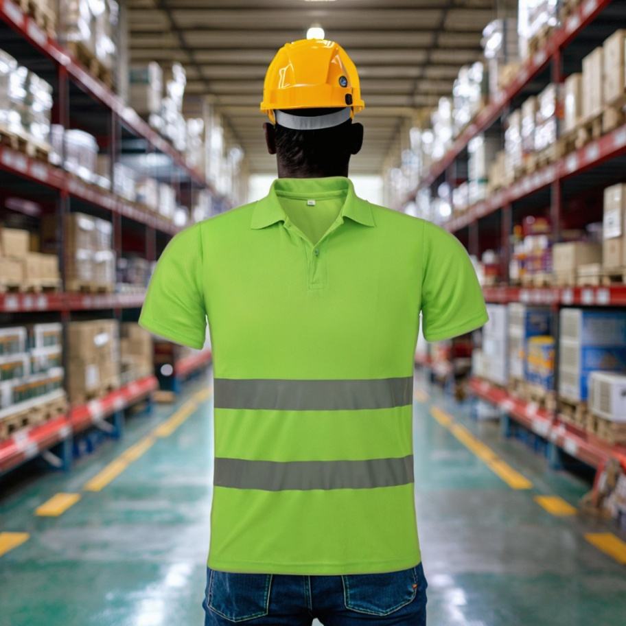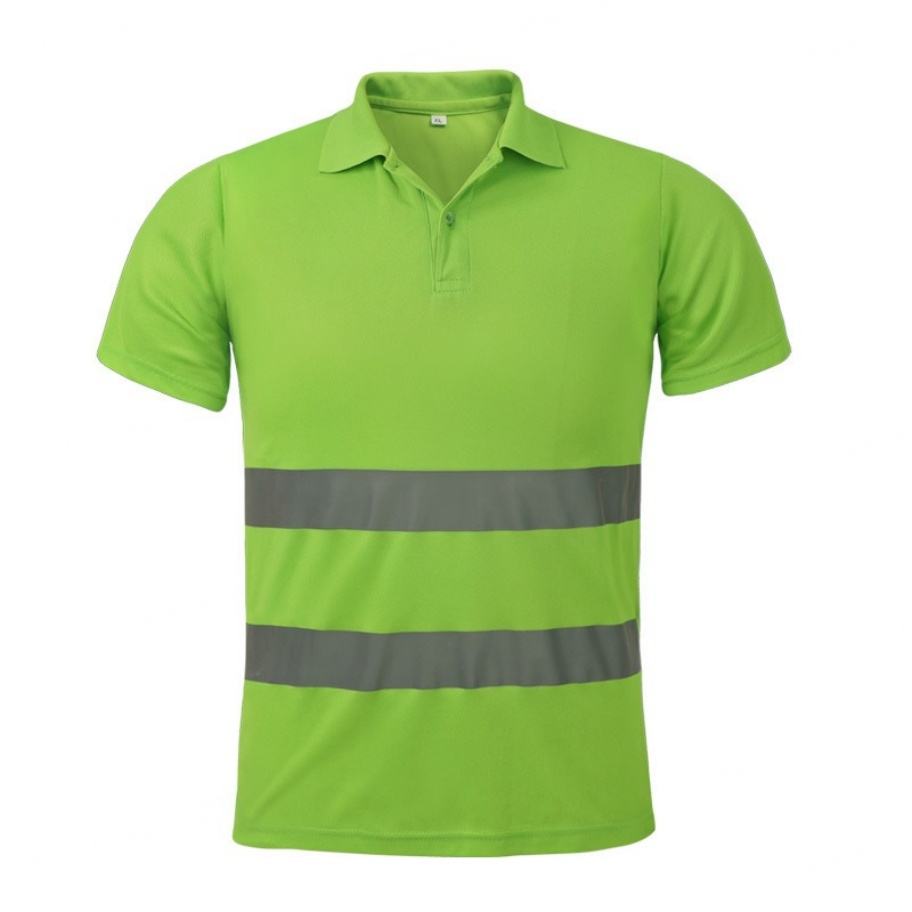 เสื้อโปโลแขนสั้นสีเขียวสะท้อนแสงแบบปรับแต่งได้ พร้อมเสื้อกั๊กนิรภัยสะท้อนแสงและโลโก้สั่งทำ