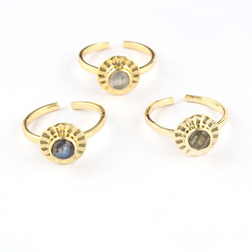 แหวนพลอยธรรมชาติปรับแต่งได้แหวนดีไซน์ลายดอกไม้ลาบราดอไรต์ดูหรูหราทำจากทองเหลือง18K ชุบทองง่ายใส่ได้ทุกวัน