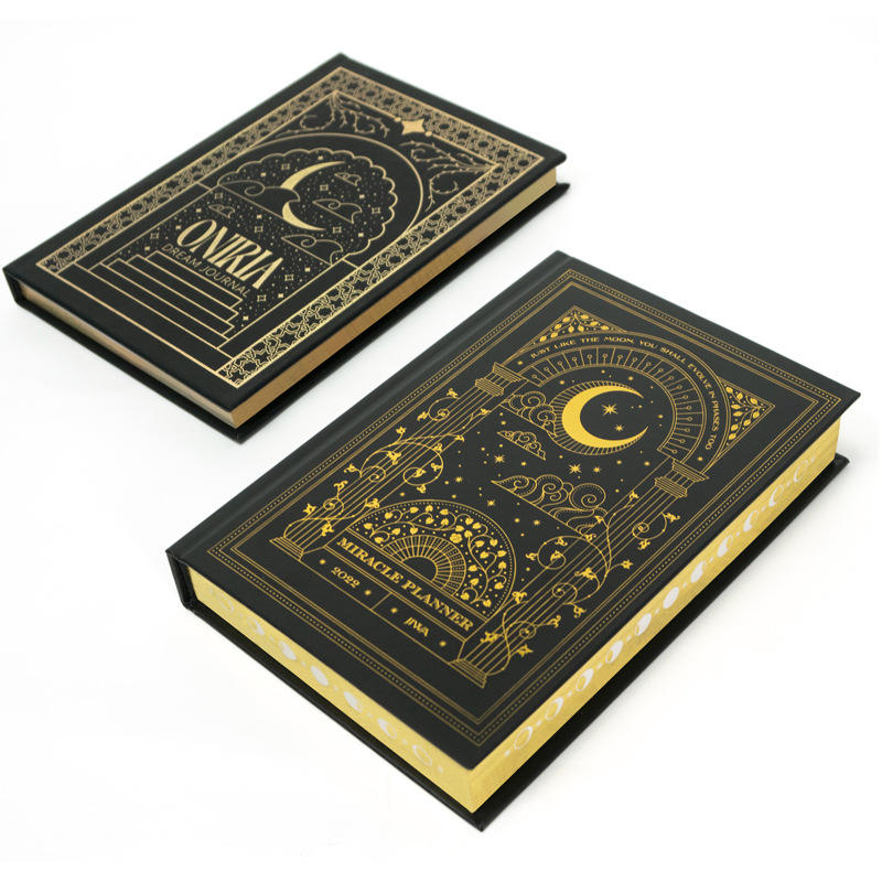 สมุดโน๊ตปก A5แบบแข็งโลโก้ฟอยล์สีทองสลักลายได้สมุดโน๊ตขอบทองคำเปลว