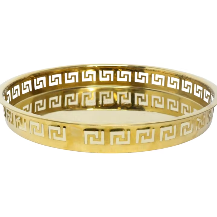 ถาดสแตนเลสตกแต่งบ้านสีทองปรับแต่งได้พร้อมที่จับสำหรับเสิร์ฟและตกแต่งบ้านในช่วงรอมฎอนและคริสต์มาส