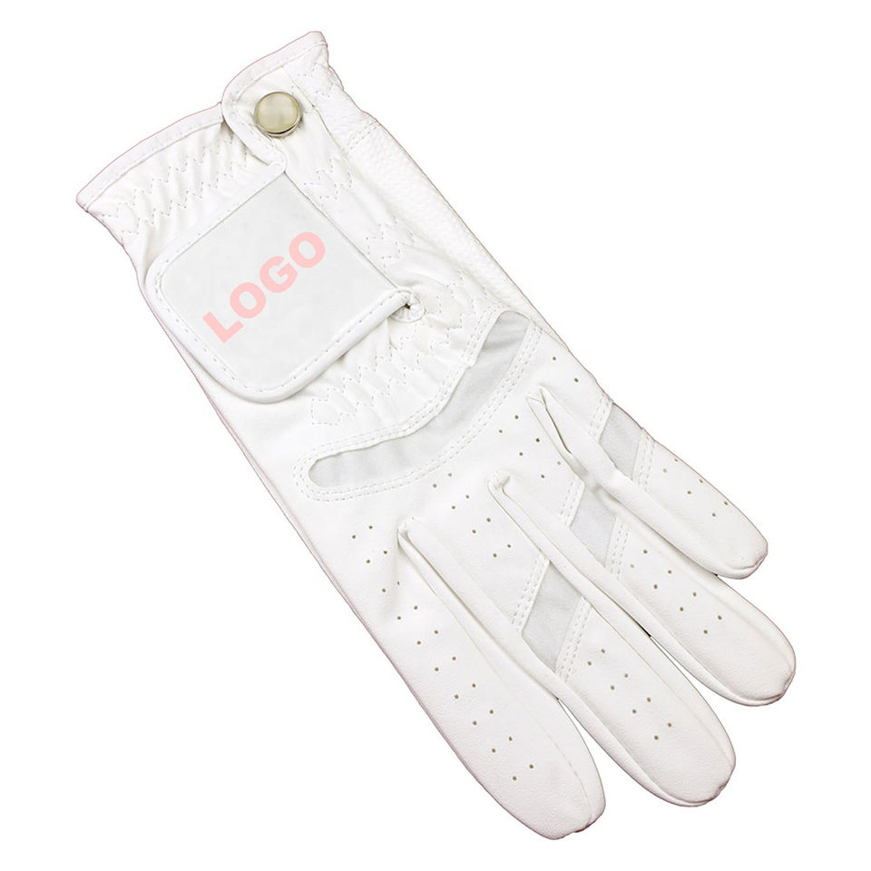 ถุงมือกอล์ฟหนังแกะสีขาวปรับแต่งได้พร้อมโลโก้แบบนุ่มสำหรับใช้ในกีฬา