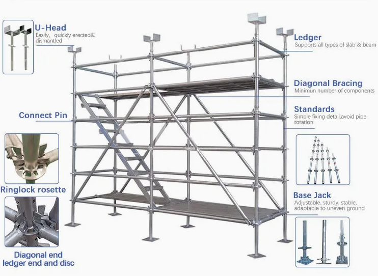 โครงนั่งร้านรูปตัว H ปรับแต่งได้สำหรับการก่อสร้างอาคารสูงบันไดและนั่งร้านส่งจากโรงงาน