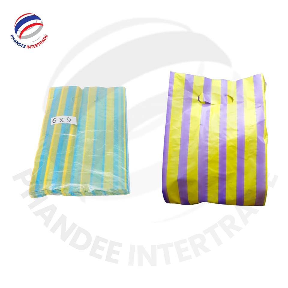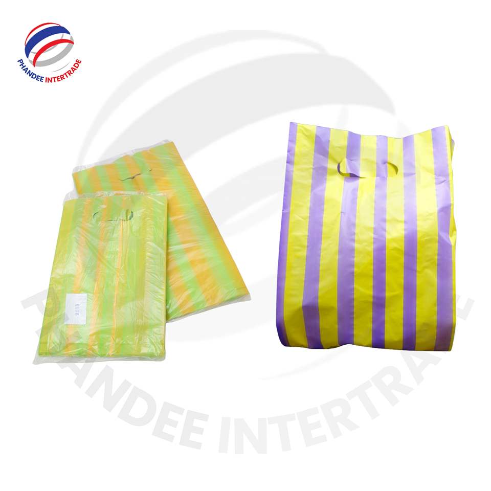 ถุงช้อปปิ้งพลาสติกลายทาง HDPE แบบสั่งทำทนทานและราคาไม่แพงสำหรับบรรจุภัณฑ์สำหรับร้านขายเสื้อผ้าสีสันสดใส