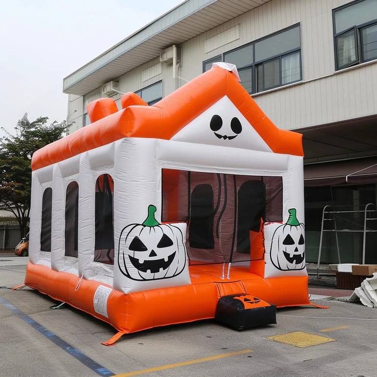 ปราสาทเป่าลมพร้อมสไลด์คอมโบสำหรับเด็กตกแต่งฟักทองบ้านเด้งวันฮาโลวีนสยองขวัญปรับแต่งได้