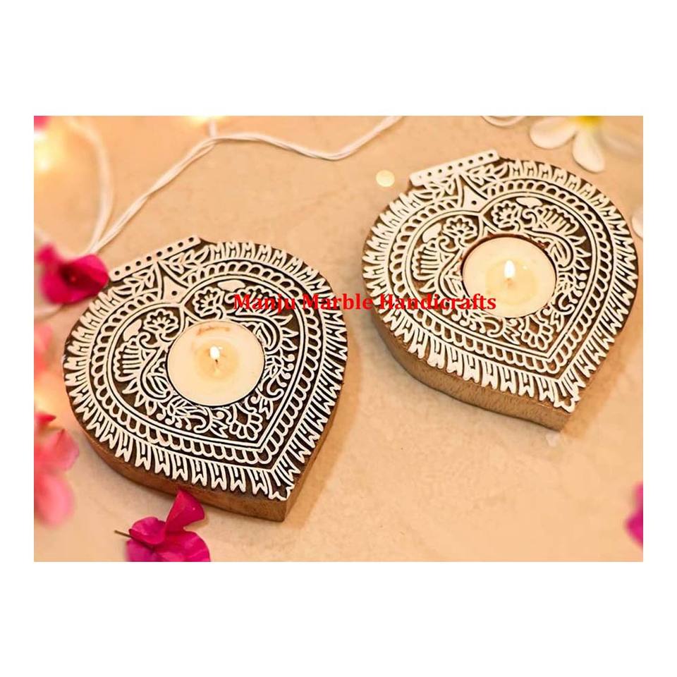Customizable Hand Curved Product Top Design Wooden Candle Holder With Different Shape MOP Work For Diwali Celebrate Decor Items