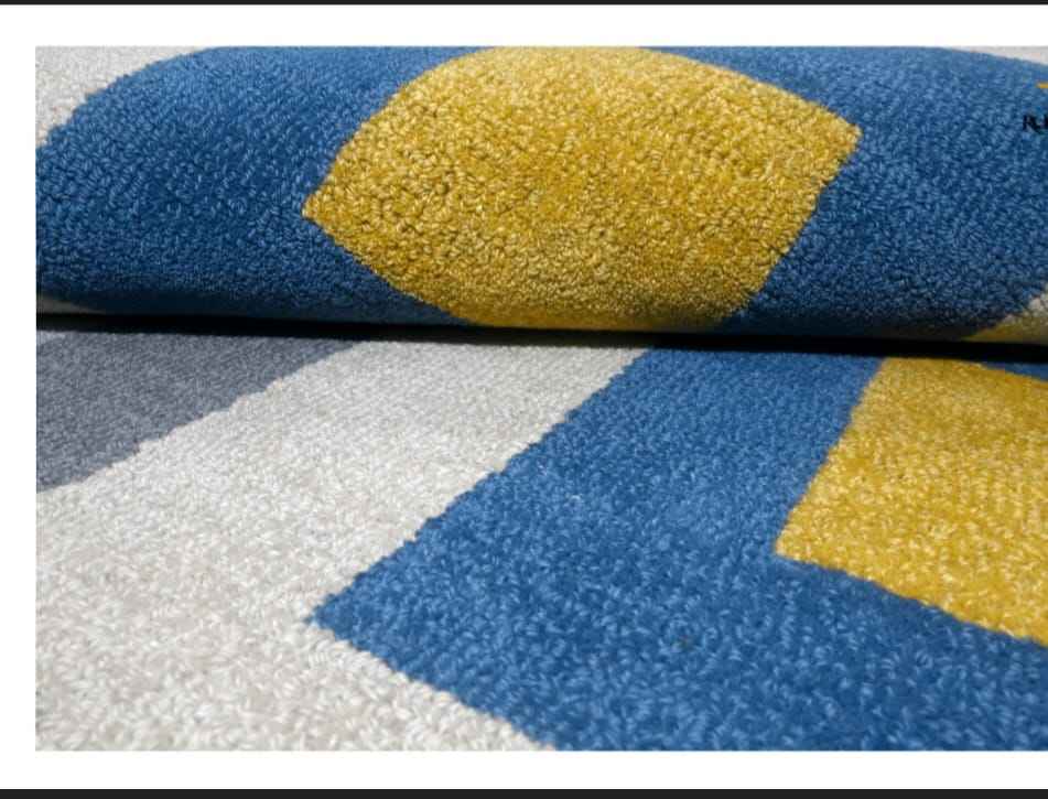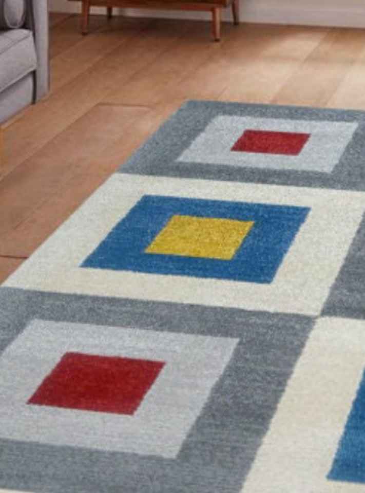 พรมปูพื้นขนสัตว์ทรงเรขาคณิตแบบตกแต่งด้วยมือปรับแต่งได้พรมขนสัตว์แฮนด์เมดสำหรับห้องนั่งเล่นมีหลายขนาดให้เลือก