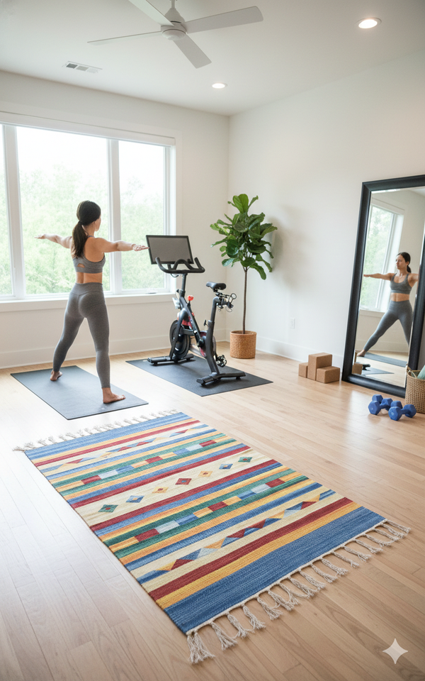 พรมสี่เหลี่ยมผืนผ้าทอมือลายดอกไม้สไตล์โมเดิร์น ทำจากผ้าฝ้ายเนื้อหนา ทนทาน ซักเครื่องได้ ด้านหลังแบบกลับด้านได้ เหมาะสำหรับใช้ในบ้าน