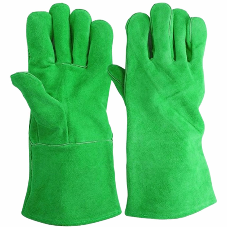 ถุงมือนิรภัยหนังวัวแยกสำหรับงานหนักปรับแต่งได้ทนทานทนไฟสำหรับงานเชื่อมมือบาร์บีคิวดับเพลิง