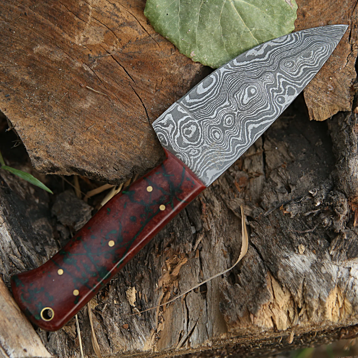 มีดสกินเนอร์เหล็กดามัสกัสคาร์บอนสูงแบบปรับแต่งได้ งานแฮนด์เมดด้ามเต็ม พร้อมด้ามไม้คุณภาพสูง