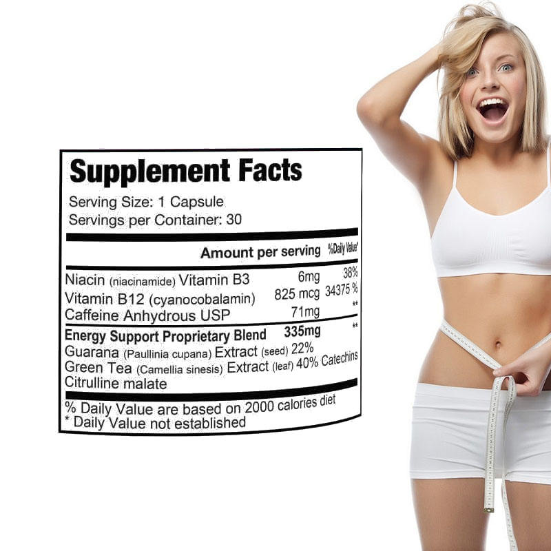 Niacin, Vitamin B3, Vitamin B12, Caffeine Anhydrous USP, Energy Support Proprietary BlendMain Ingredient