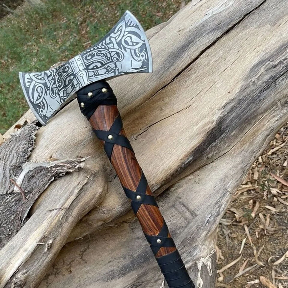 ขวานหัวสองหัวเหล็กดามัสกัสเกรดอุตสาหกรรมปรับแต่งได้ขวานมีปลอกสำหรับการตั้งแคมป์