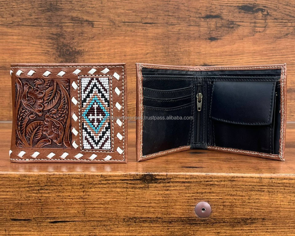 Product Name:Hand Tooled Leather Beaded Men's Bifold Wallet