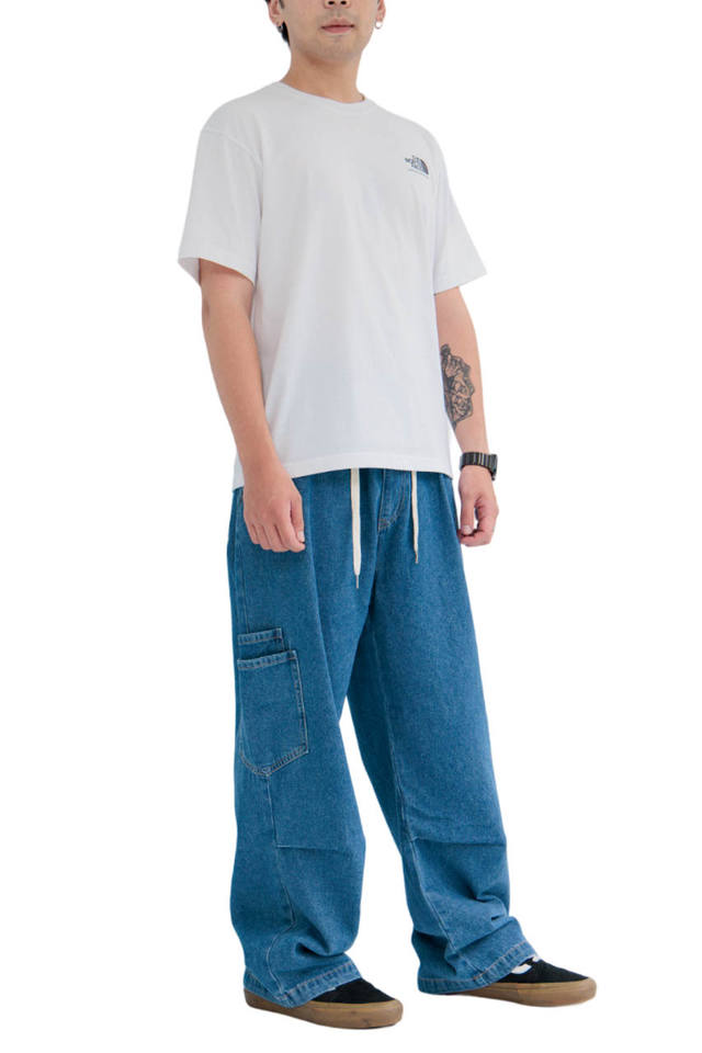 ยีนส์เดนิมระบายอากาศได้สำหรับผู้ชายฤดูใบไม้ผลิสตรีทฮิปฮอปขากว้างปรับแต่งได้