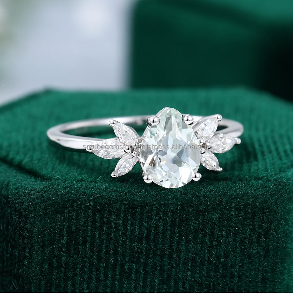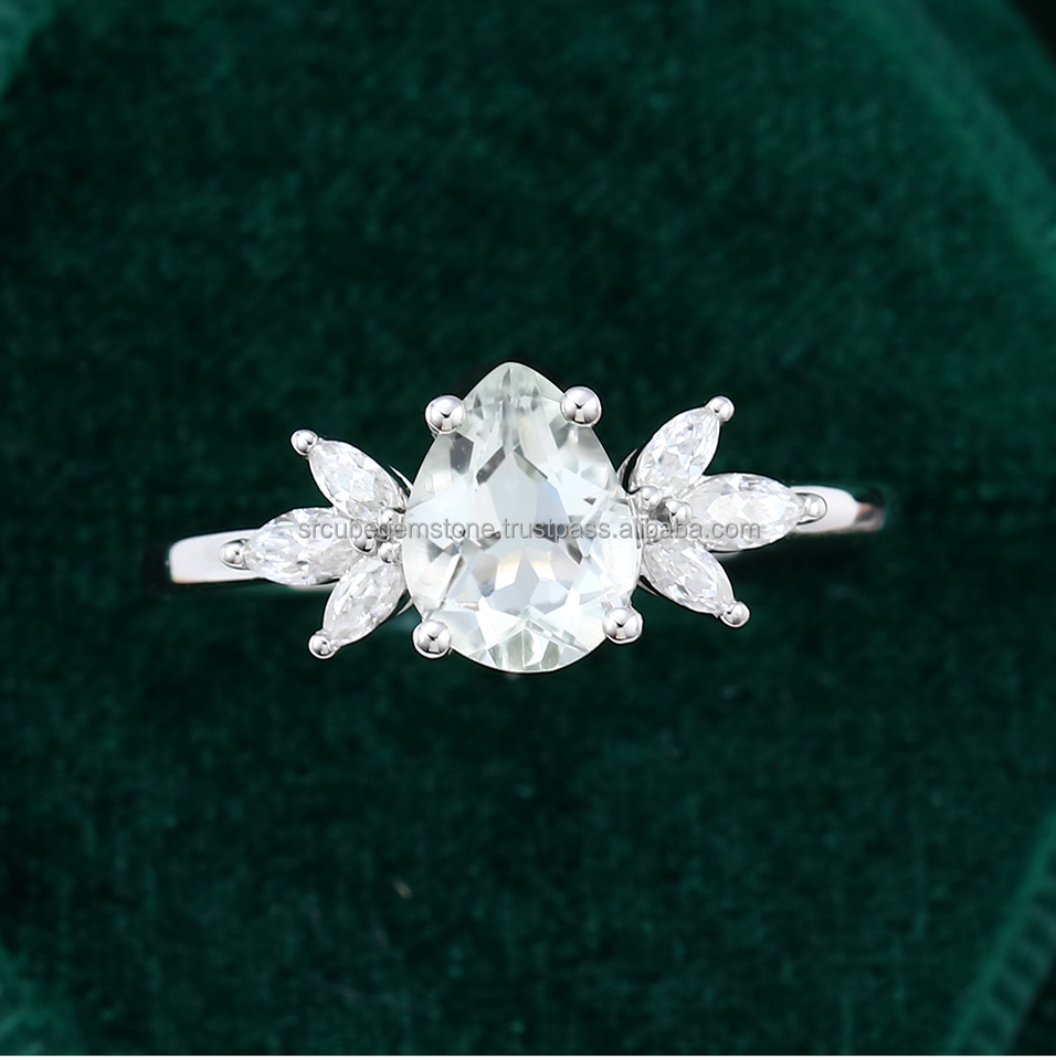 ของขวัญสำหรับผู้หญิงแหวนเพชรโมอิสชุบทองสำหรับ S925ลูกแพร์เงินปรับแต่งได้