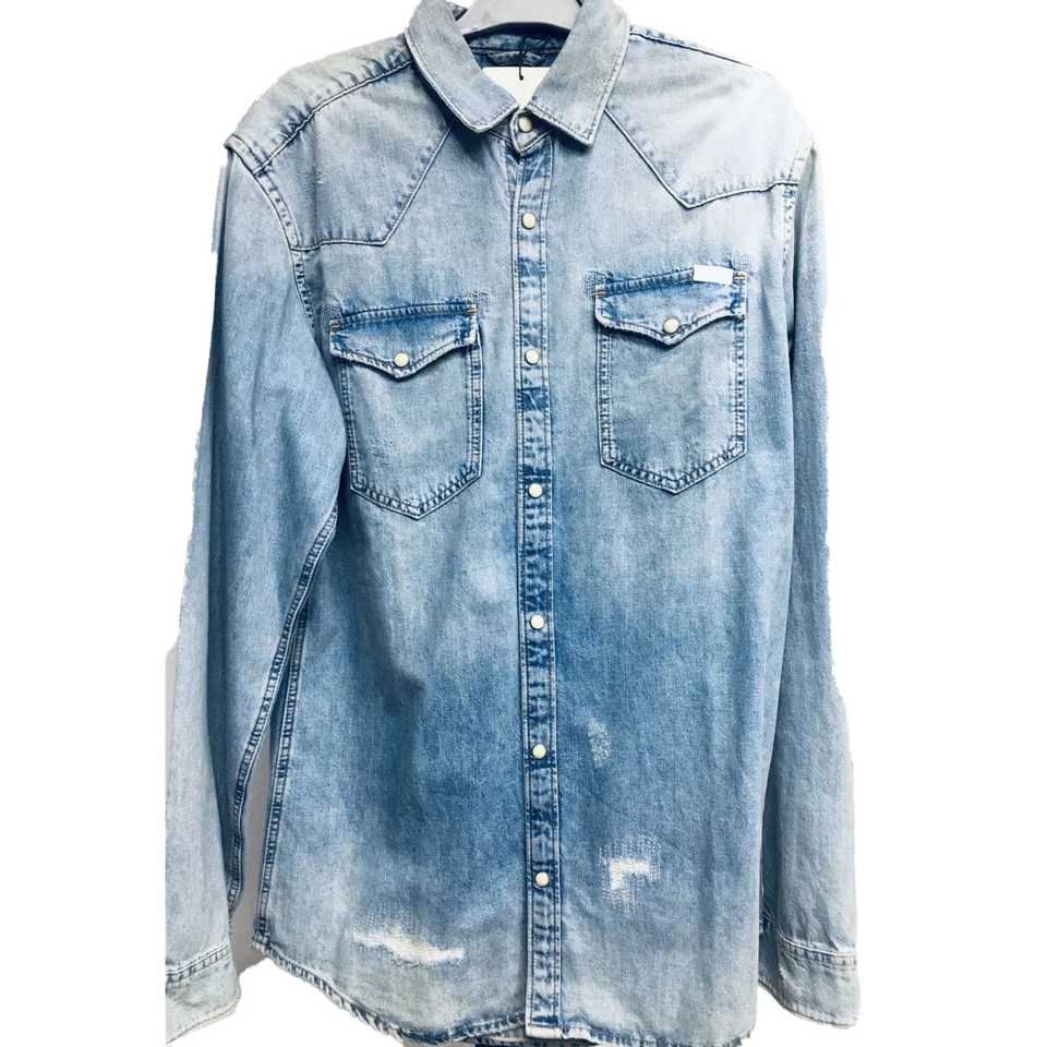 ปรับแต่งคุณภาพสูงและราคาถูกแขนยาว SLIM FIT ปิดลงปกล้างเสื้อยีนส์สําหรับชายส่งออกจากบังคลาเทศ