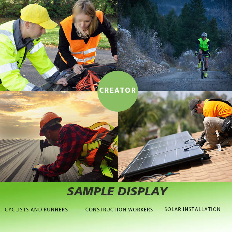 วัสดุ:100% โพลีเอสเตอร์ถักขนาด120กรัมเย็บด้วยเทปสะท้อนแสงสูง