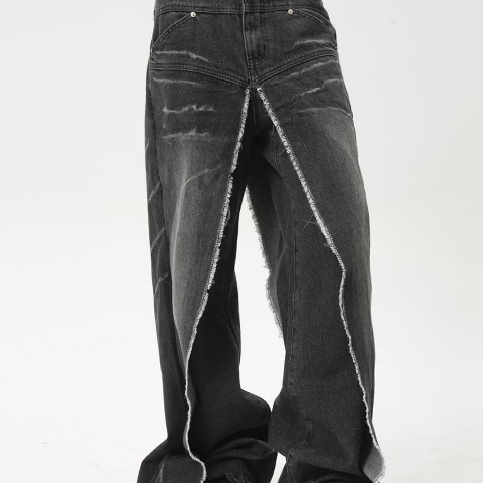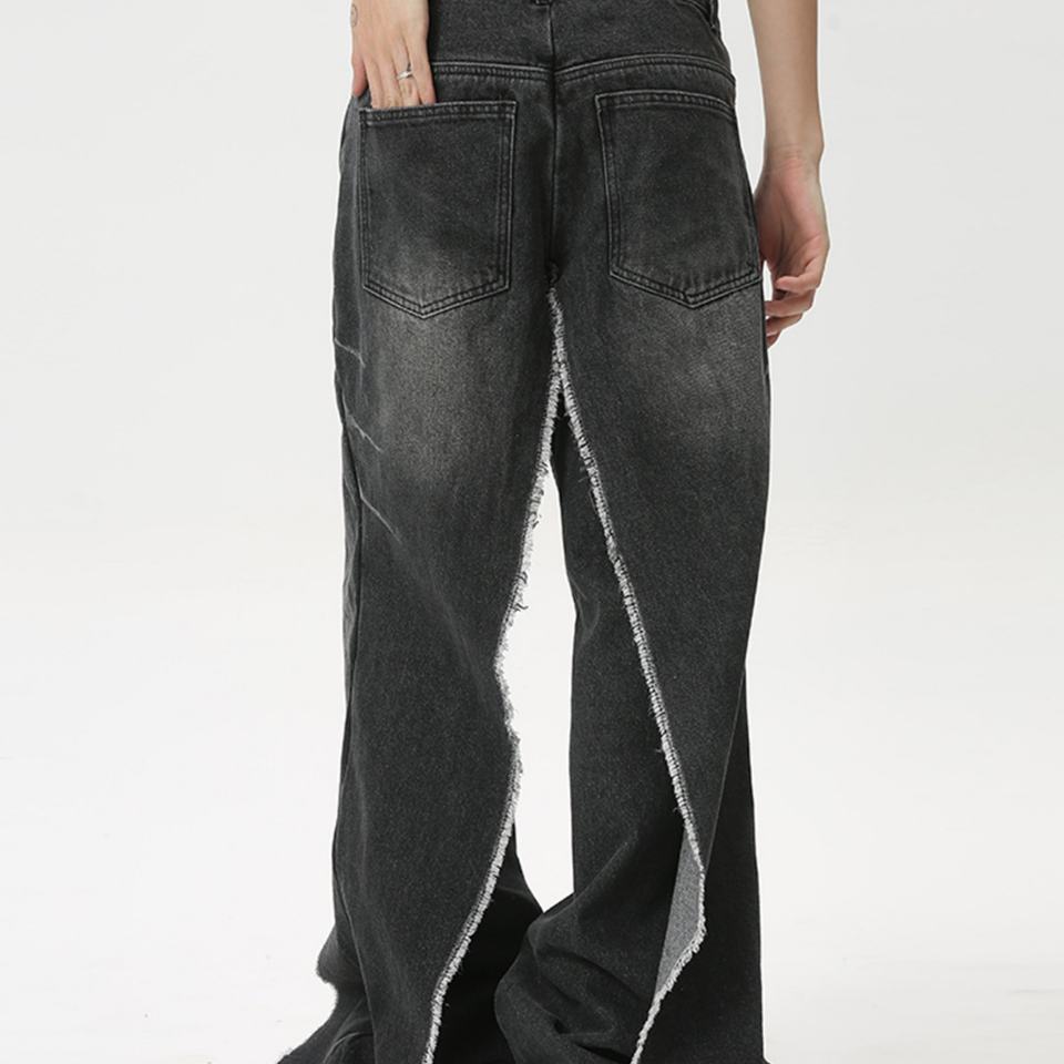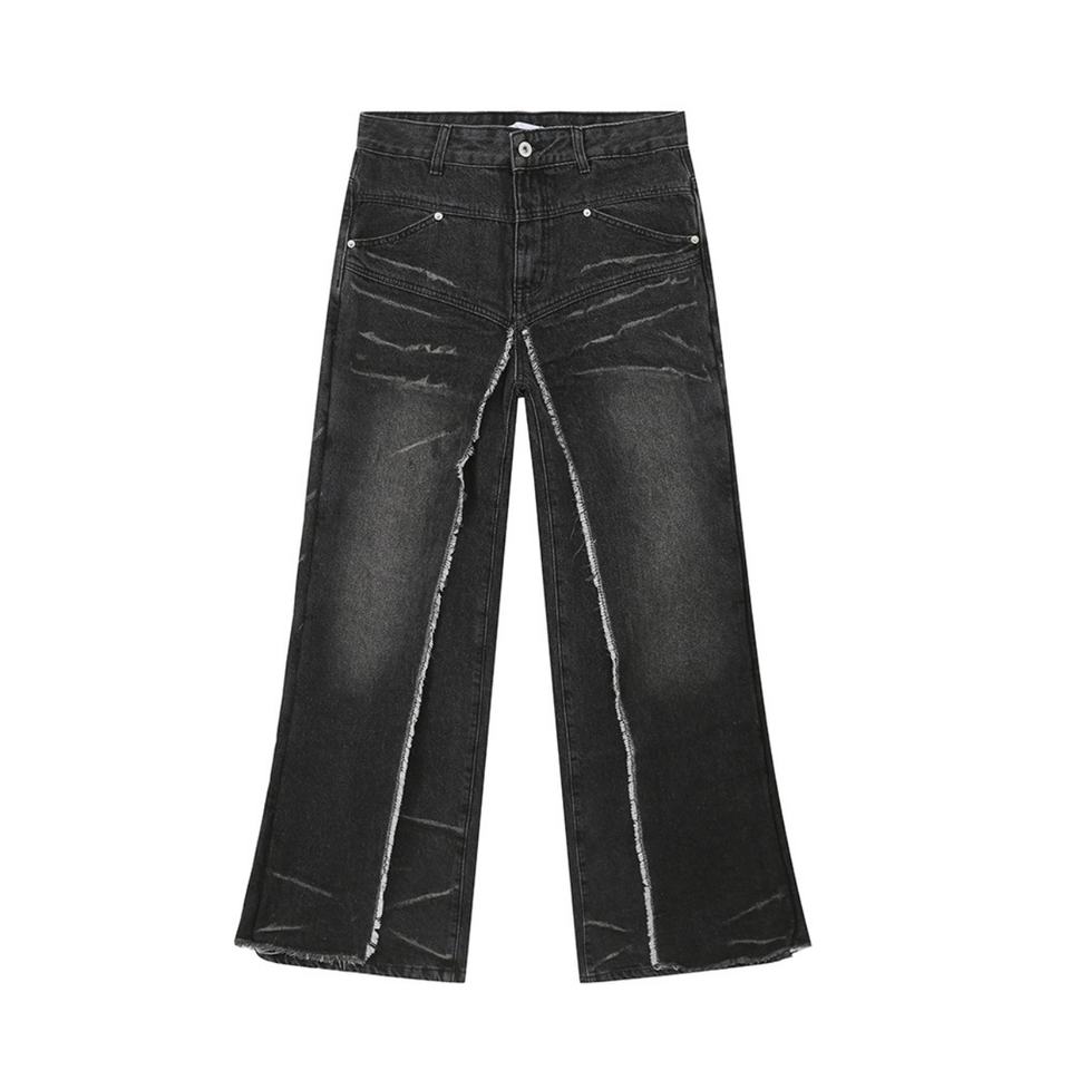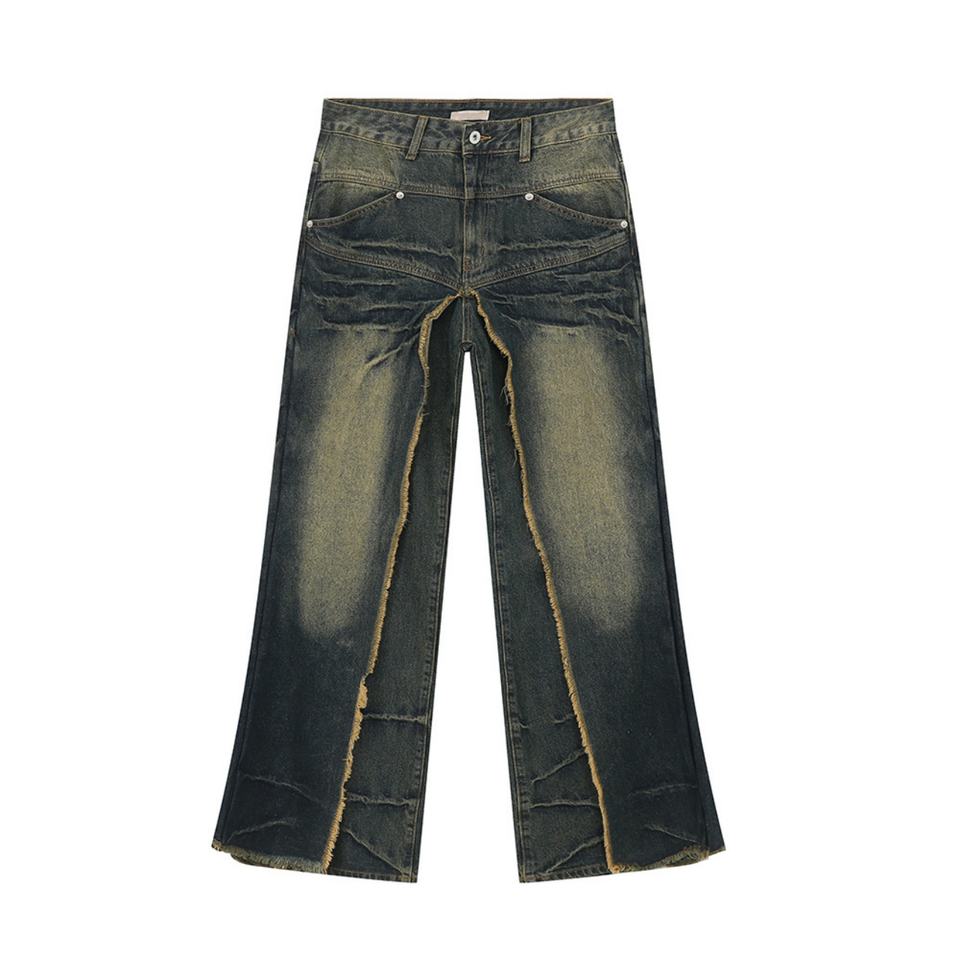 กางเกงยีนส์ทรงตรงสไตล์ฮิปฮอปวินเทจสำหรับผู้ชาย รุ่น Y2K สตรีท ระบายอากาศได้ดี ผ้ายีนส์ฟอกสี แต่งลายปะติด สำหรับฤดูใบไม้ผลิและฤดูใบไม้ร่วง