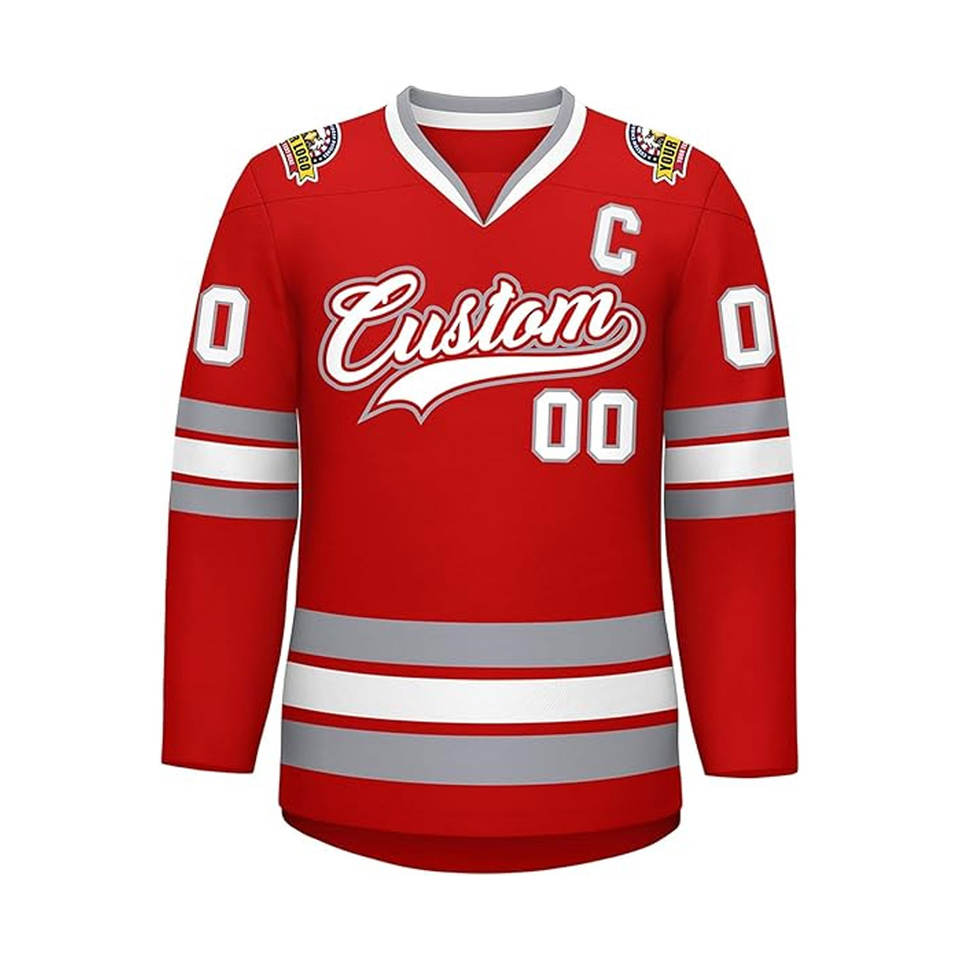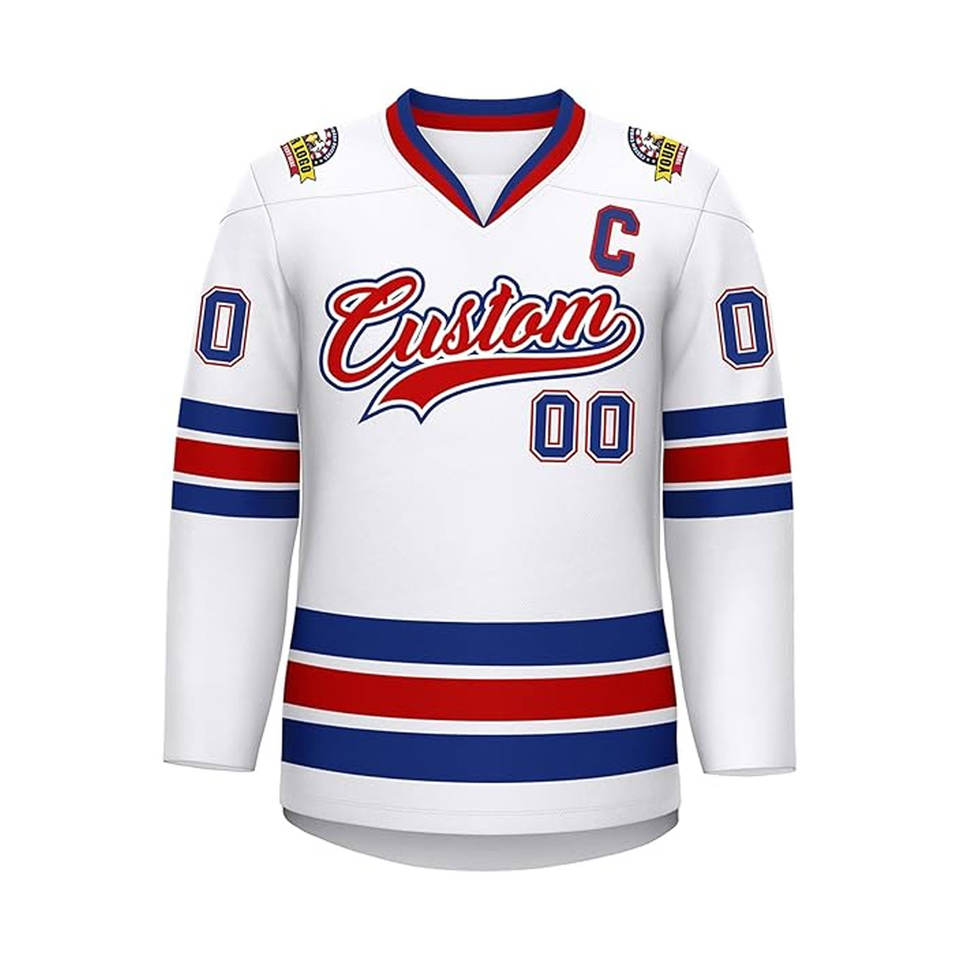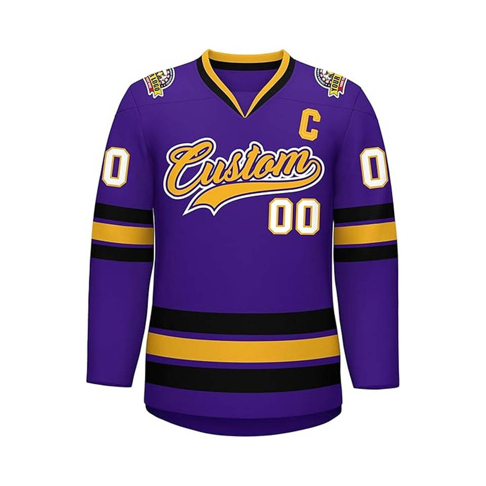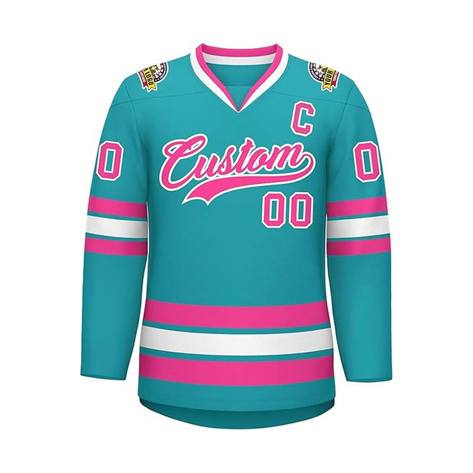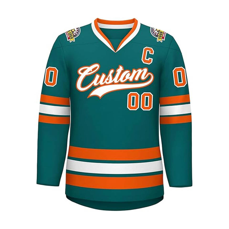 เสื้อฮอกกี้น้ำแข็งพิมพ์ลายตามสั่ง แขนยาว ชื่อทีม เบอร์ โลโก้-ออกแบบสีของคุณเอง โพลีเอสเตอร์ 100% บริการ OEM