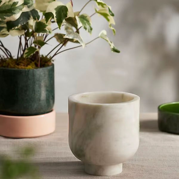 กระถางต้นไม้หินอ่อนตกแต่งภายในที่ปรับแต่งได้ สำหรับจัดวางต้นไม้เพื่อเพิ่มความสวยงามให้พื้นที่อยู่อาศัยด้วยสไตล์หินที่หรูหรา