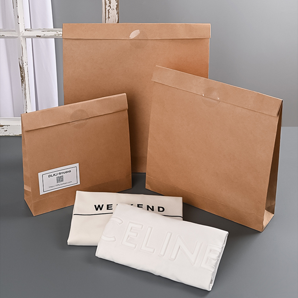 ถุงกระดาษคราฟท์ปรับแต่งได้ทนทานเป็นมิตรต่อสิ่งแวดล้อมแข็งแรงสะอาดถูกสุขลักษณะมีลายนูนสำหรับเสื้อผ้า