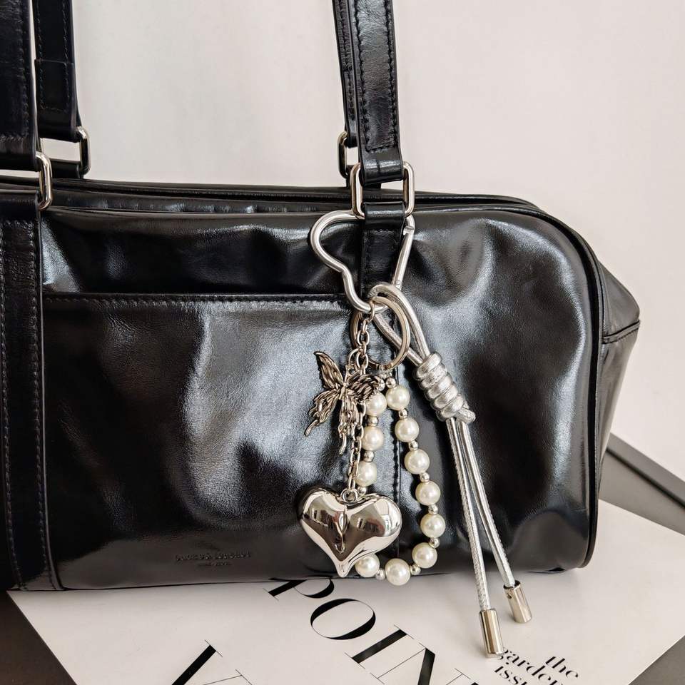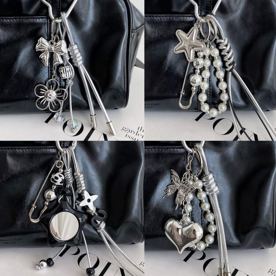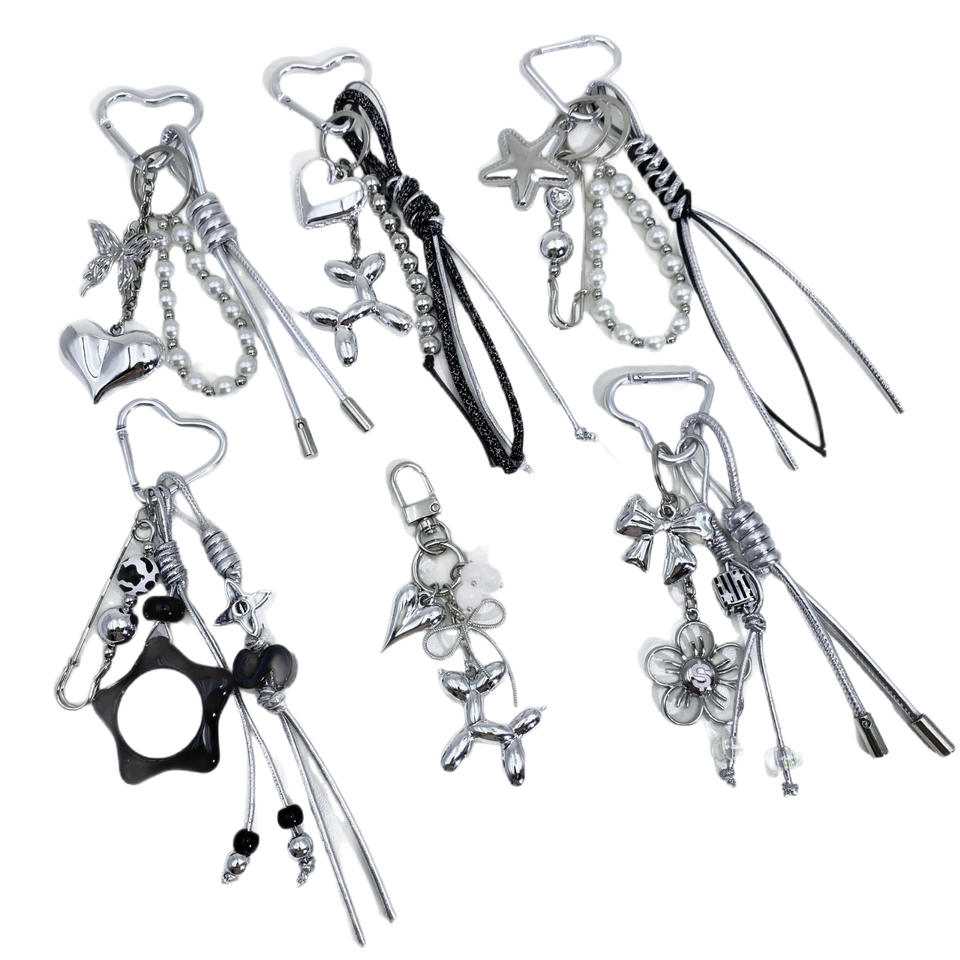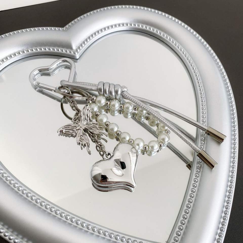 พวงกุญแจห้อยประดับลูกปัดไข่มุกจี้รูปการ์ตูนเชือกถักทำจากหนังสามารถปรับแต่งได้