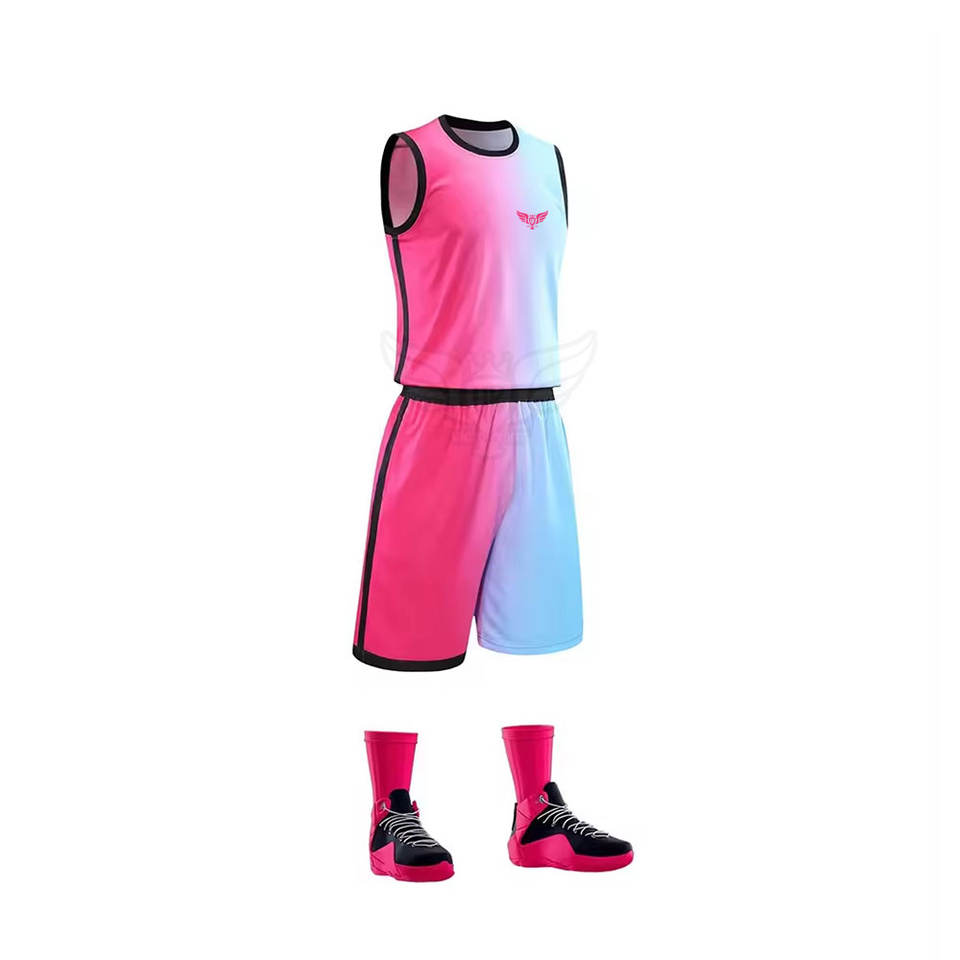 ชุดและชุดบาสเก็ตบอลชุดทีมออกแบบซับลิเมชันน้ำหนักเบาสามารถปรับแต่งได้ทนทานและสะดวกสบาย