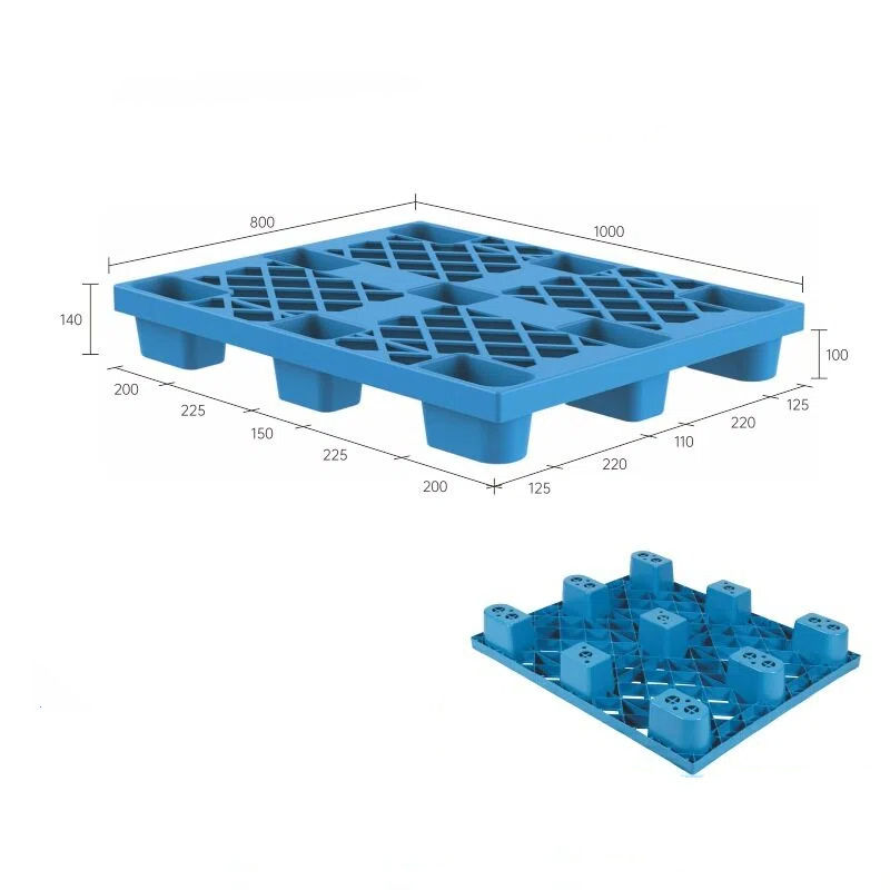 พาเลทพลาสติกแบบด้านเดียว 9 ช่อง รองรับน้ำหนักได้ 0.5 ตัน แบบ 4 ทางเข้า สำหรับคลังสินค้าอุตสาหกรรม โลโก้ปรับแต่งได้ เป็นมิตรกับสิ่งแวดล้อม
