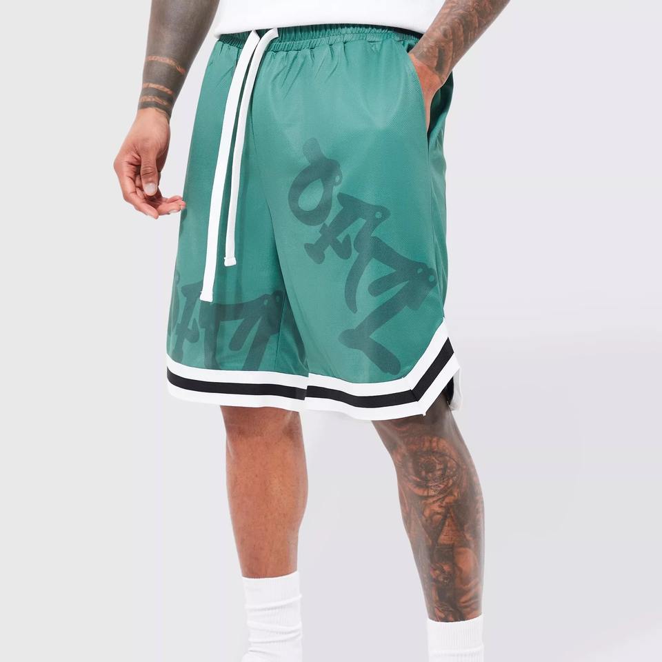 กางเกงขาสั้นแห้งเร็วระบายอากาศได้ดีตาข่ายสองชั้นสำหรับฝึกซ้อมบาสเก็ตบอลอเมริกันโลโก้แบบปรับแต่งได้