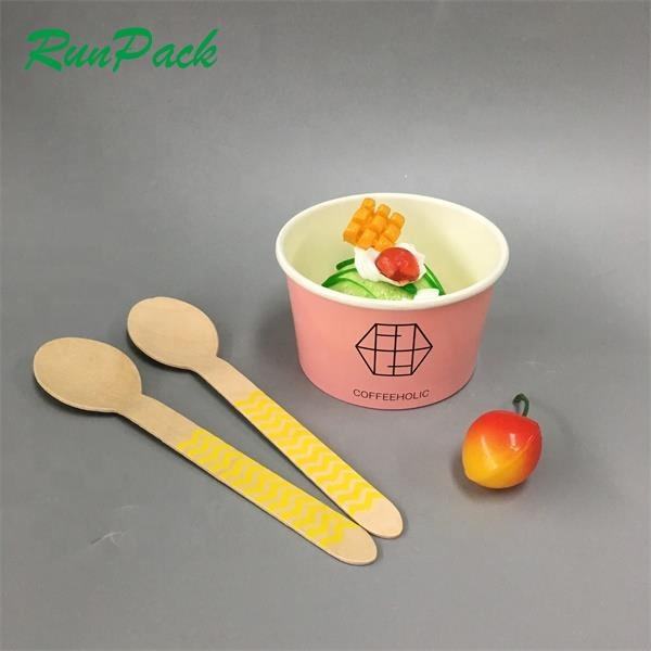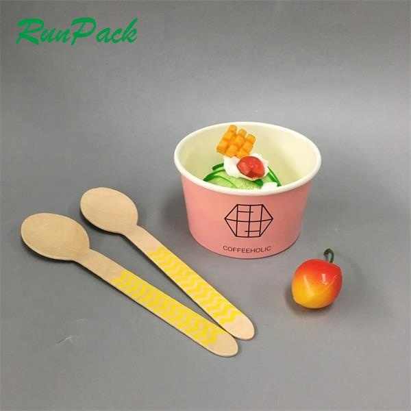 ช้อนขนาดใหญ่ทำจากไม้ไผ่แบบใช้แล้วทิ้งสำหรับใส่ไอศกรีมบะหมี่ซูชิถ้วยกระดาษคราฟท์สำหรับเครื่องดื่มของคุณ