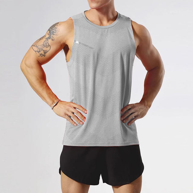 เสื้อกีฬาผู้ชายแบบมีโลโก้ปรับแต่งได้ สำหรับวิ่ง ฟิตเนส ออกกำลังกาย แห้งเร็ว ทรงหลวม ไม่มีแขน เหมาะสำหรับวิ่งมาราธอน และฝึกซ้อมกรีฑา