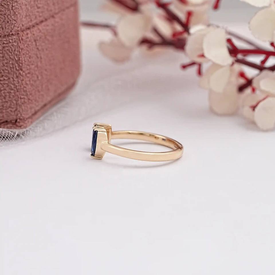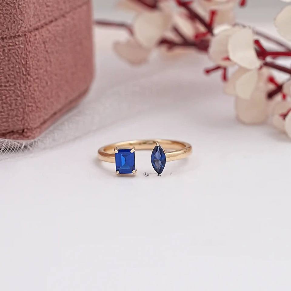 Customizable Luxury 10k Solid Gold Diamond Ring with Brilliant Cut Two Stone Gemstone Blue Cushion Marquise for Weddings Gifts
