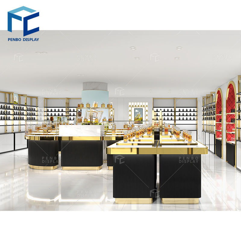 ตู้โชว์น้ำหอมสุดหรูปรับแต่งได้ดีไซน์น้ำหอมสีดำชั้นวางน้ำหอมเฟอร์นิเจอร์บูติก