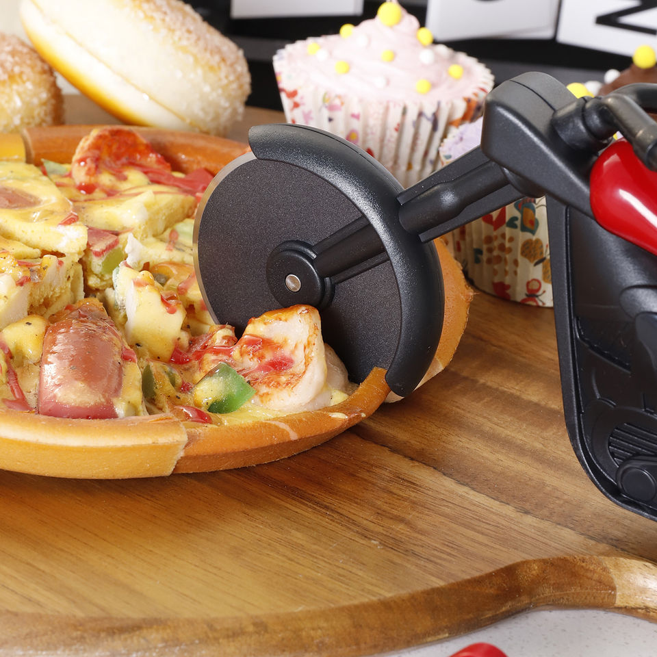 ที่ตัดพิซซ่ารูปทรงมอเตอร์ไซค์แบบปรับแต่งได้ ทำจากสแตนเลส ใช้สำหรับตัดพิซซ่า แพนเค้ก และวาฟเฟิล