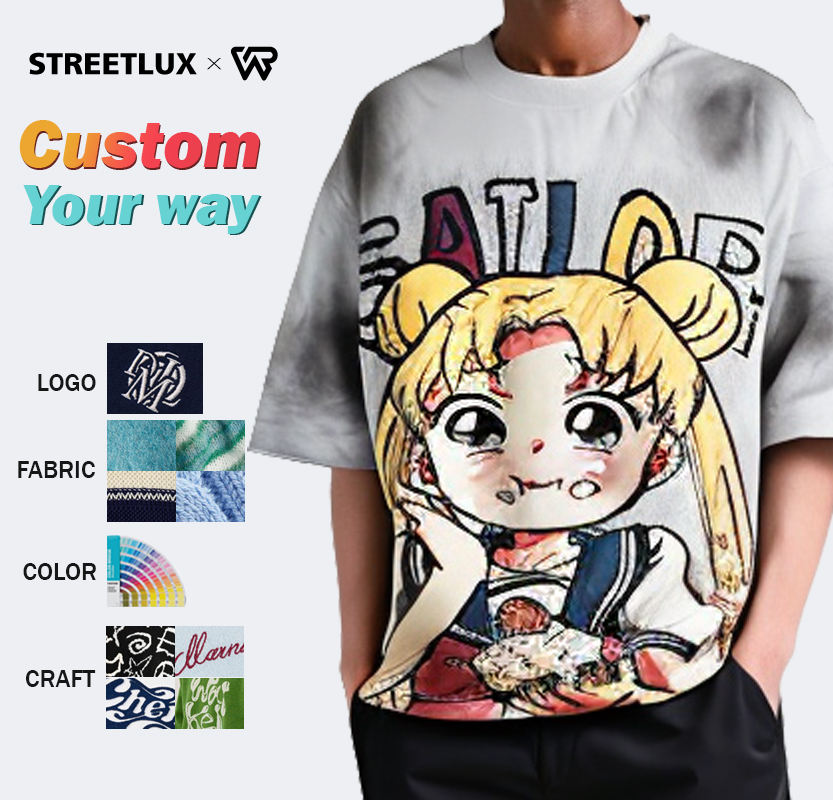 เสื้อยืดสวมหัวลายอะนิเมะสำหรับผู้ชายปรับแต่งได้เสื้อยืดผู้ชาย100% ผ้าฝ้าย320กรัมวัสดุโอเวอร์ไซส์ระบายอากาศสะพายไหล่ได้
