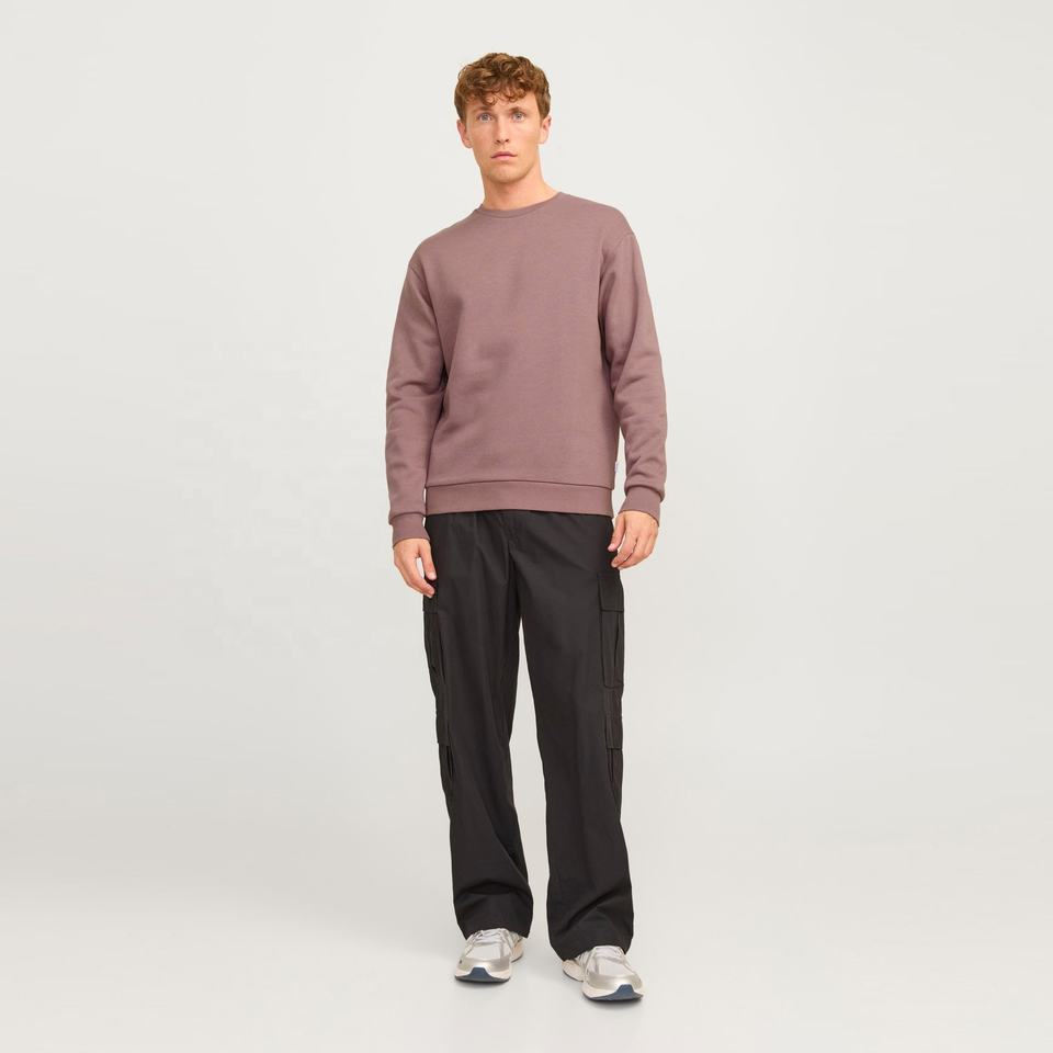 เสื้อสเวตเชิ้ตผู้ชายแบบปรับแต่งได้สำหรับฤดูหนาว ผ้าฝ้าย 100% ไม่มีฮู้ด ออกแบบโลโก้ได้ ทรงหลวม ไหล่ตก คอวีถัก แขนยาว