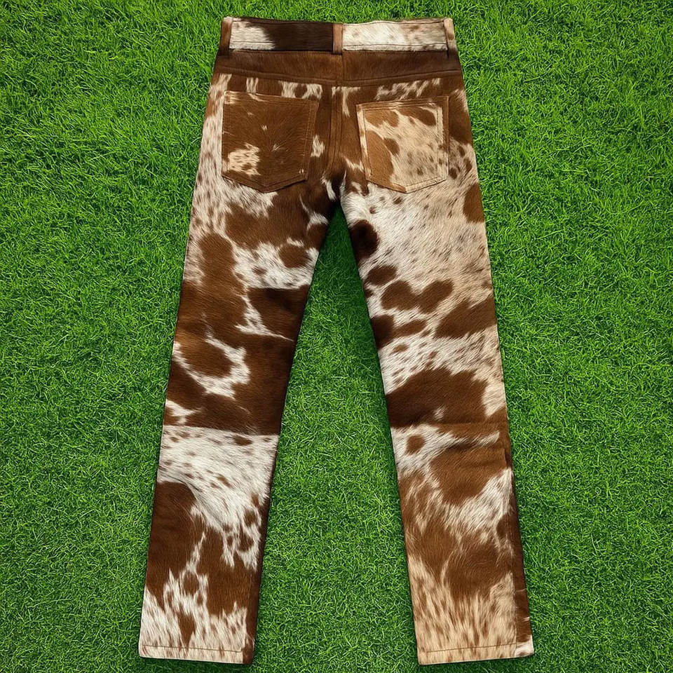 กางเกงหนังวัวแท้ 100% สำหรับผู้ชาย ปรับแต่งได้ กางเกงหนังวัวสไตล์ตะวันตก