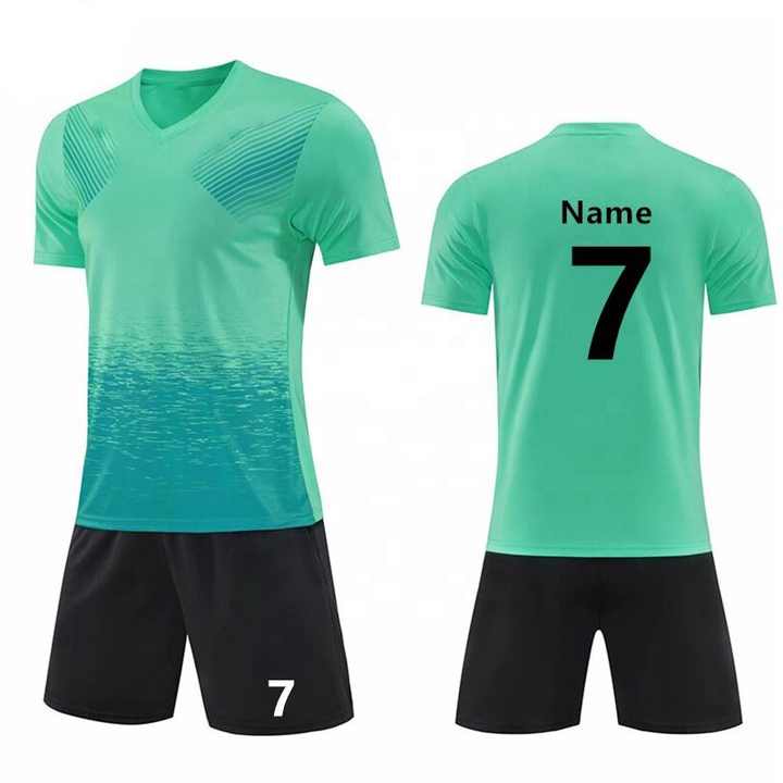 เสื้อฟุตบอลผู้ชายแบบปรับแต่งได้ ผ้าโพลีเอสเตอร์ 100% ปักลาย 3 มิติ พิมพ์ลายดิจิทัล แขนครึ่ง ปรับแต่งชื่อทีมได้หลายแบบ