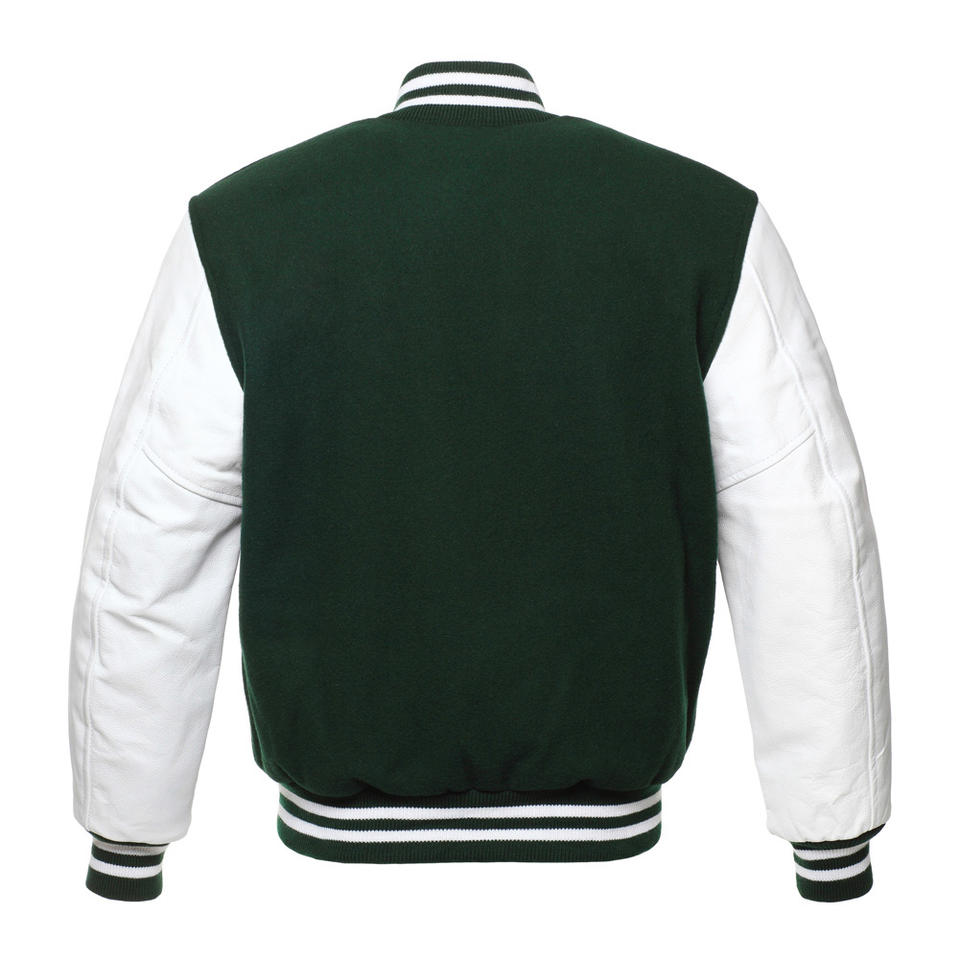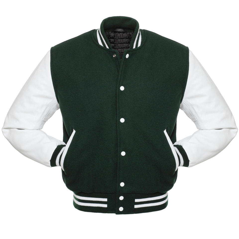 แจ็คเก็ตเบสบอลผู้ชายแบบปรับแต่งได้พร้อมดีไซน์ปักลายตัวอักษรขนาดใหญ่สไตล์ Letterman Varsity และดีไซน์แบบเรียบ