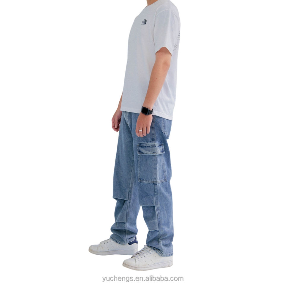 Customizable Men's Black Denim Hip Hop Casual Streetwear Wide-Leg Cargo Pants Elastic Waistband Breathable Summer Autumn Spandex