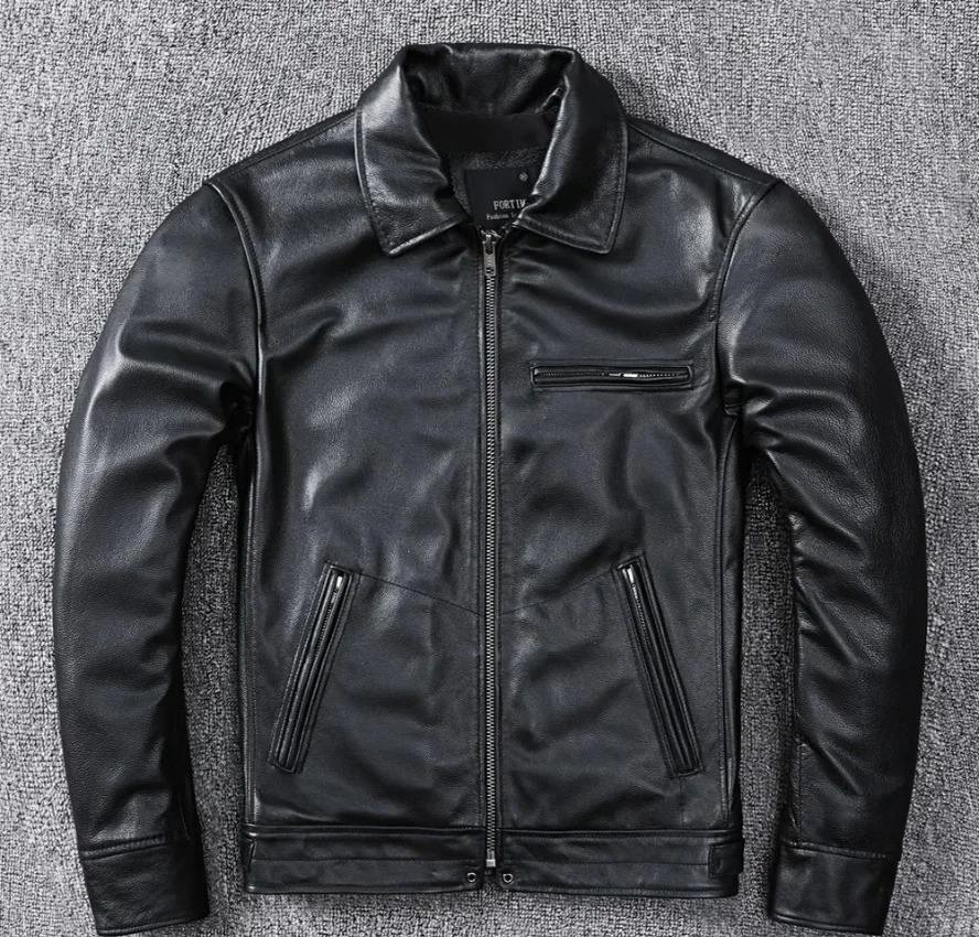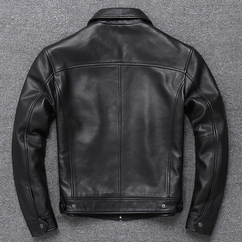 แจ็กเก็ตทรูคเกอร์ผู้ชายแบบคลาสสิกปรับแต่งได้เสื้อหนังแกะแท้สีเทามัสตาร์ดลำลองเรียบน้ำหนักเบา
