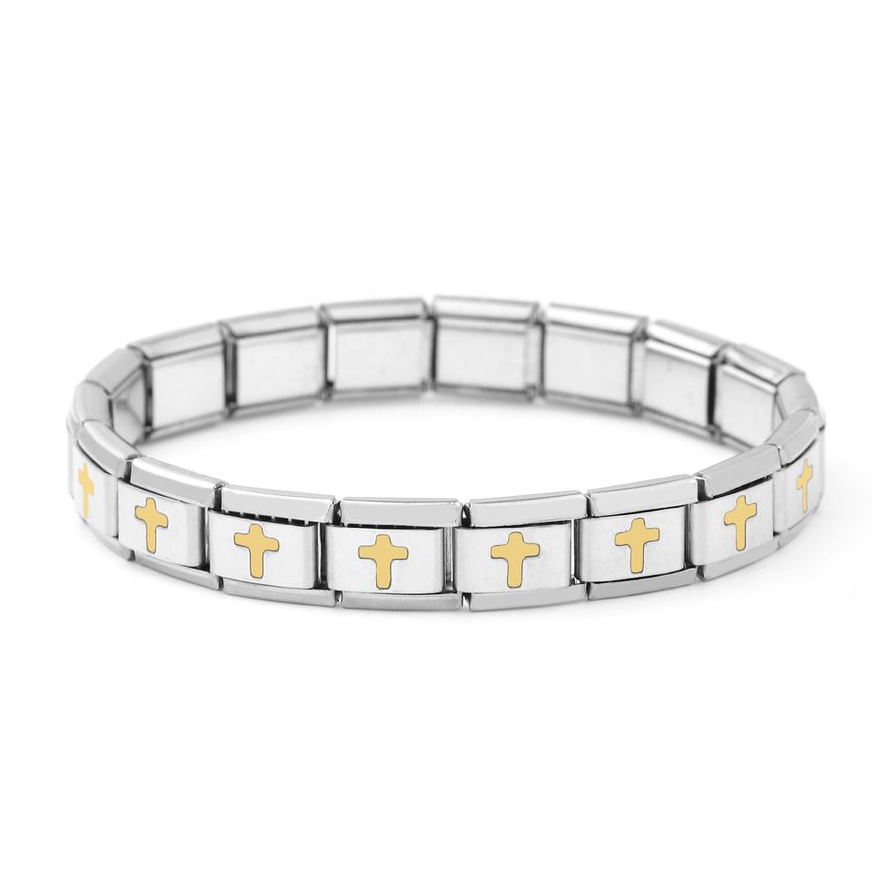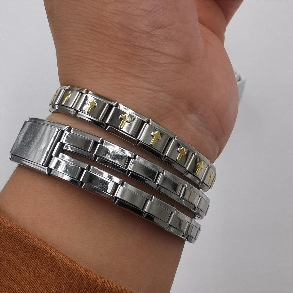 สร้อยข้อมือสแตนเลสสตีล DIY สำหรับผู้ชายปรับแต่งได้สร้อยข้อมือยืดหยุ่นสีชุดไขว้สุดสร้างสรรค์คลาสสิก