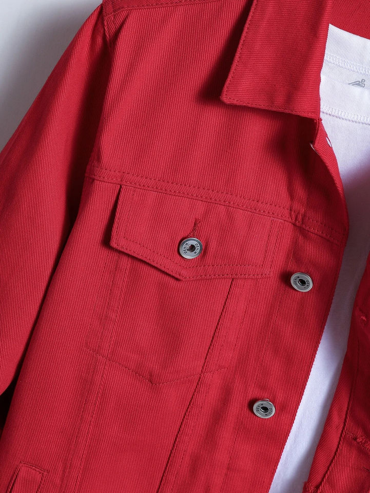 แจ็กเก็ตยีนส์ปรับแต่งได้สำหรับผู้ชายแจ็คเก็ตยีนส์พร้อมคอตั้งสไตล์สปอร์ตใส่กลางแจ้ง