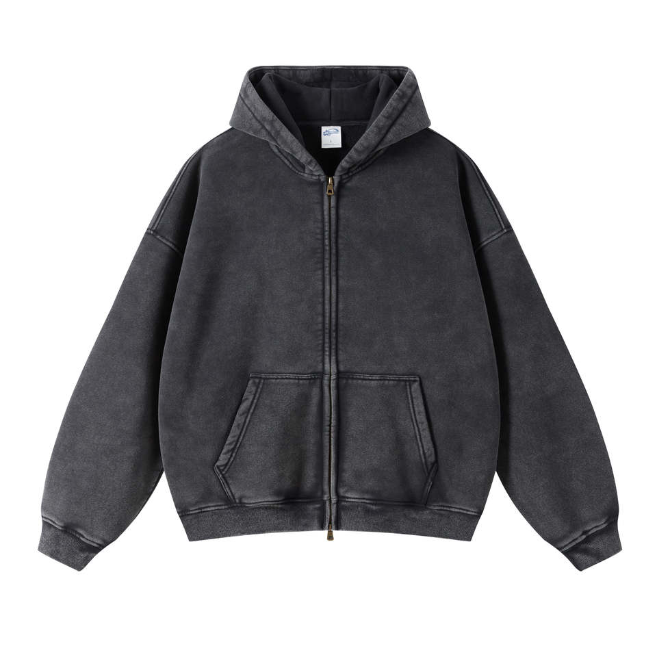 เสื้อฮู้ดมีซิปสำหรับผู้ชายปรับแต่งได้, เสื้อฮู้ดมีระดับไฮเอนด์ซักด้วยกรดติดผ้าสะพายไหล่เฮฟวี่เวทมีฮู้ดปักลาย