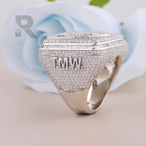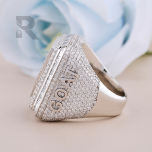 แหวนประดับเพชรทรงกลมสีทองสำหรับผู้ชายปรับแต่งได้เครื่องประดับสไตล์ฮิปฮอปน้ำแข็ง