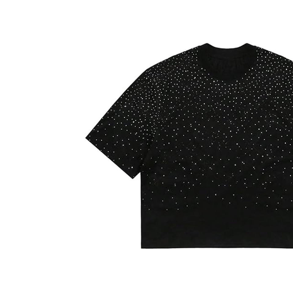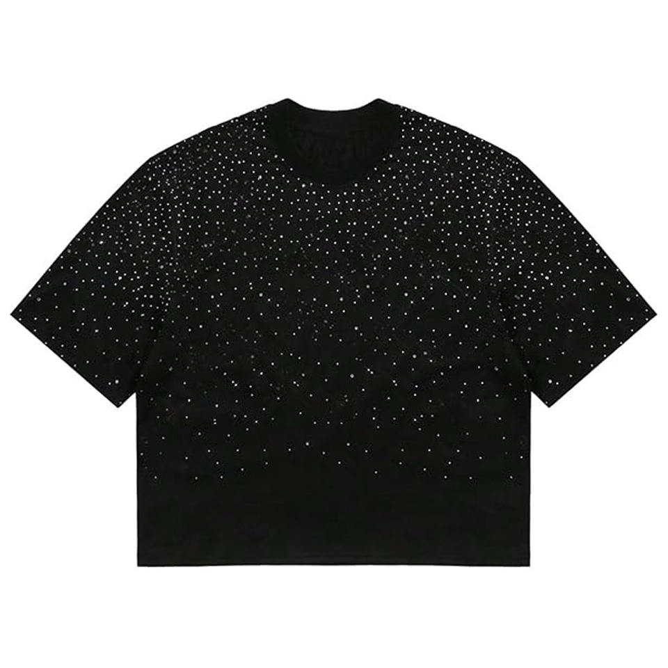 เสื้อยืดคอกลมโอเวอร์ไซส์ทรงครอปสำหรับผู้ชาย ผ้าคอตตอน 100% ปักลายเพชร กันยับ ใส่สบาย สไตล์สตรีทแวร์ ปรับแต่งได้