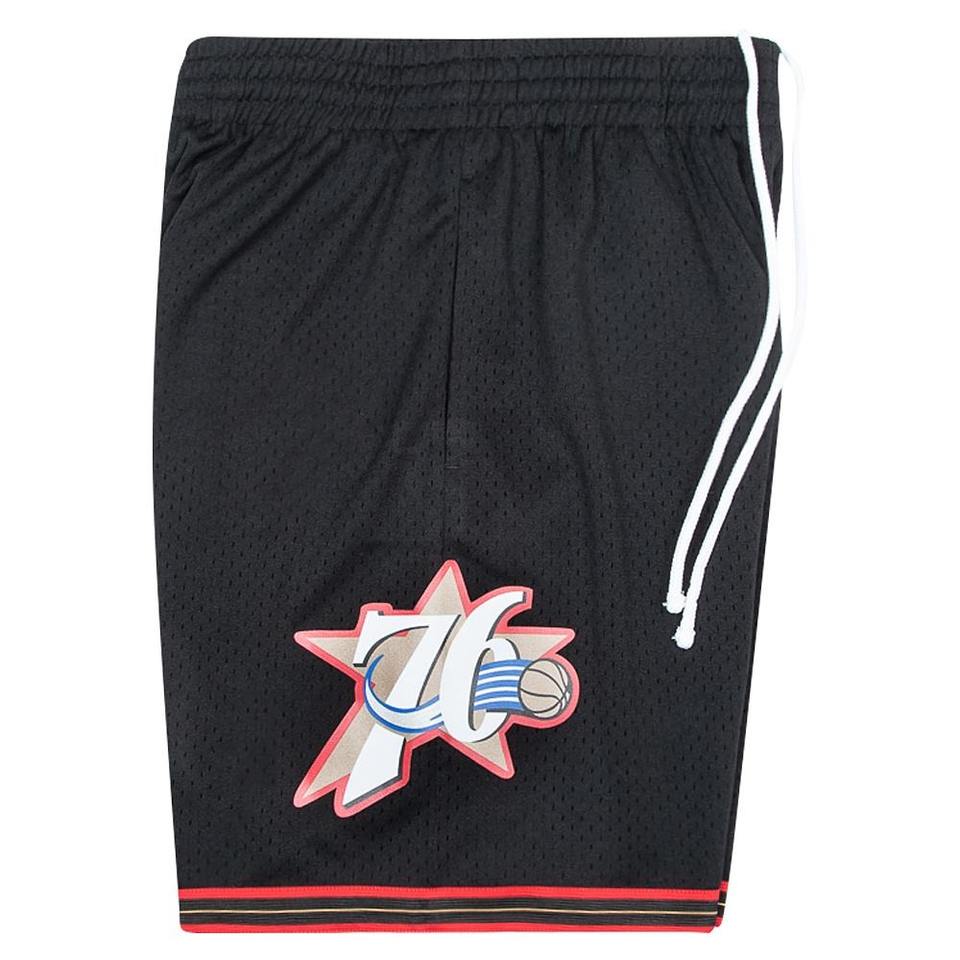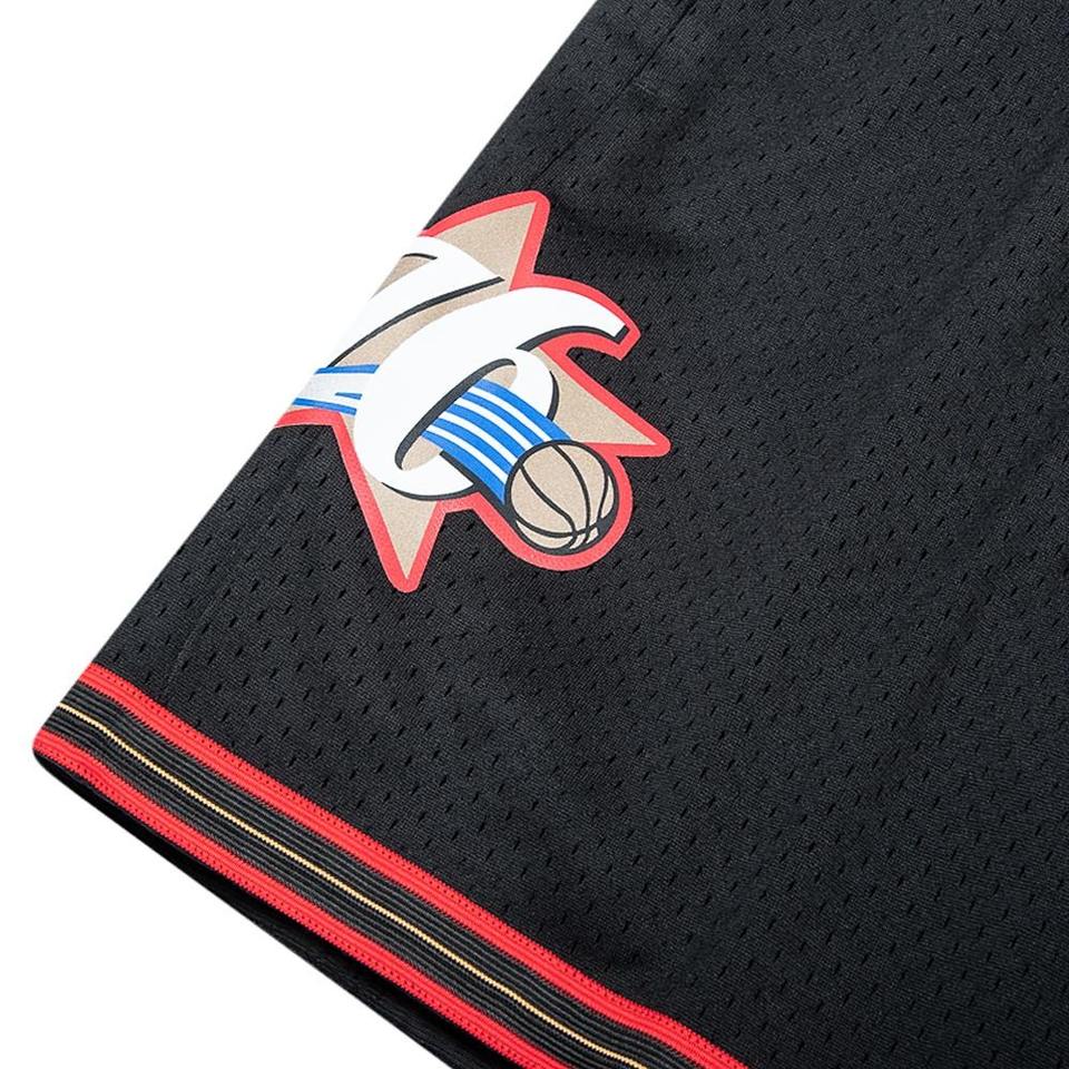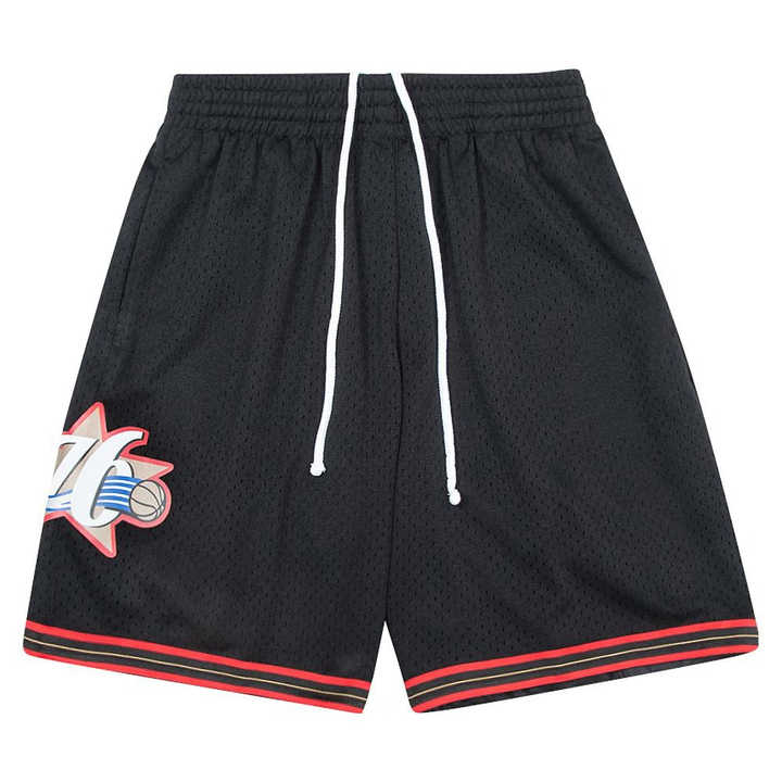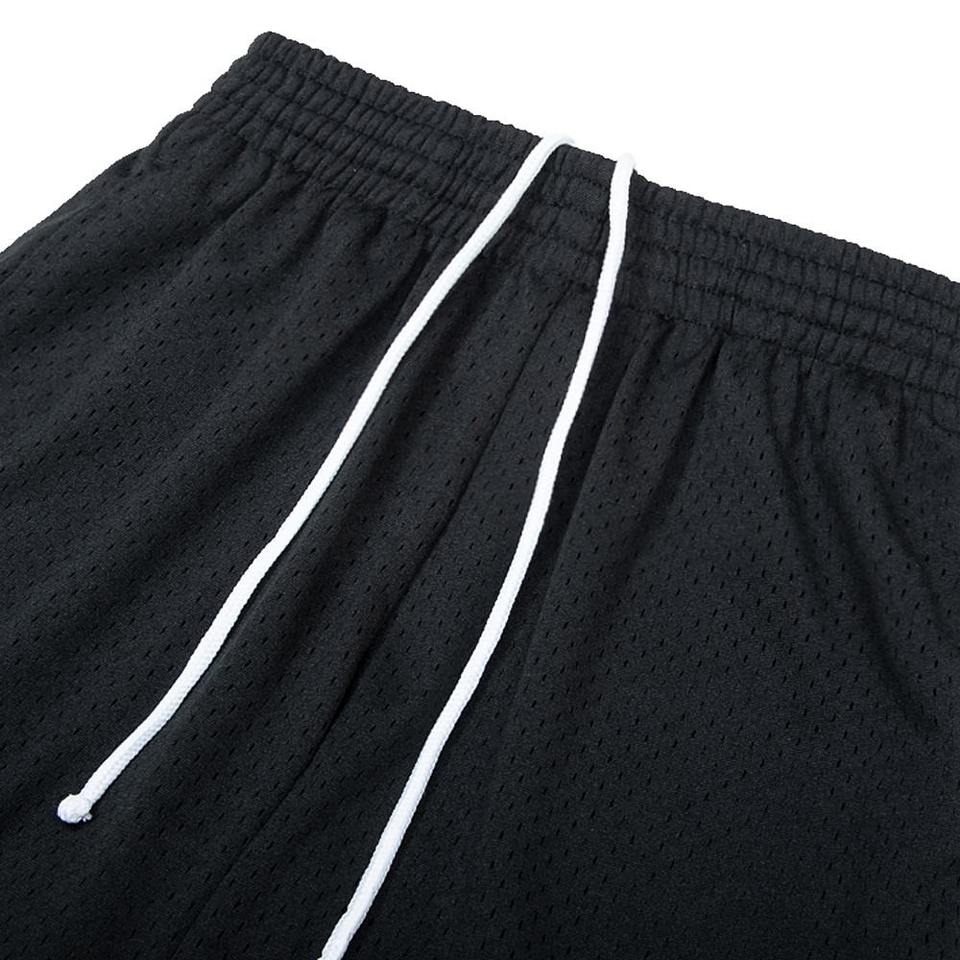 กางเกงขาสั้นเล่นกีฬาสำหรับผู้ชายกางเกงขาสั้นบาสเก็ตบอลตาข่ายสีดำพิมพ์ลายปักโลโก้ตามสั่ง