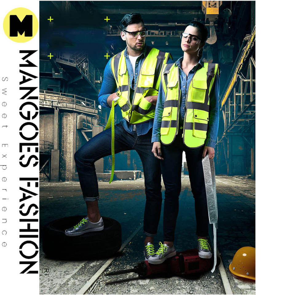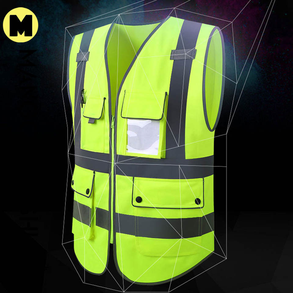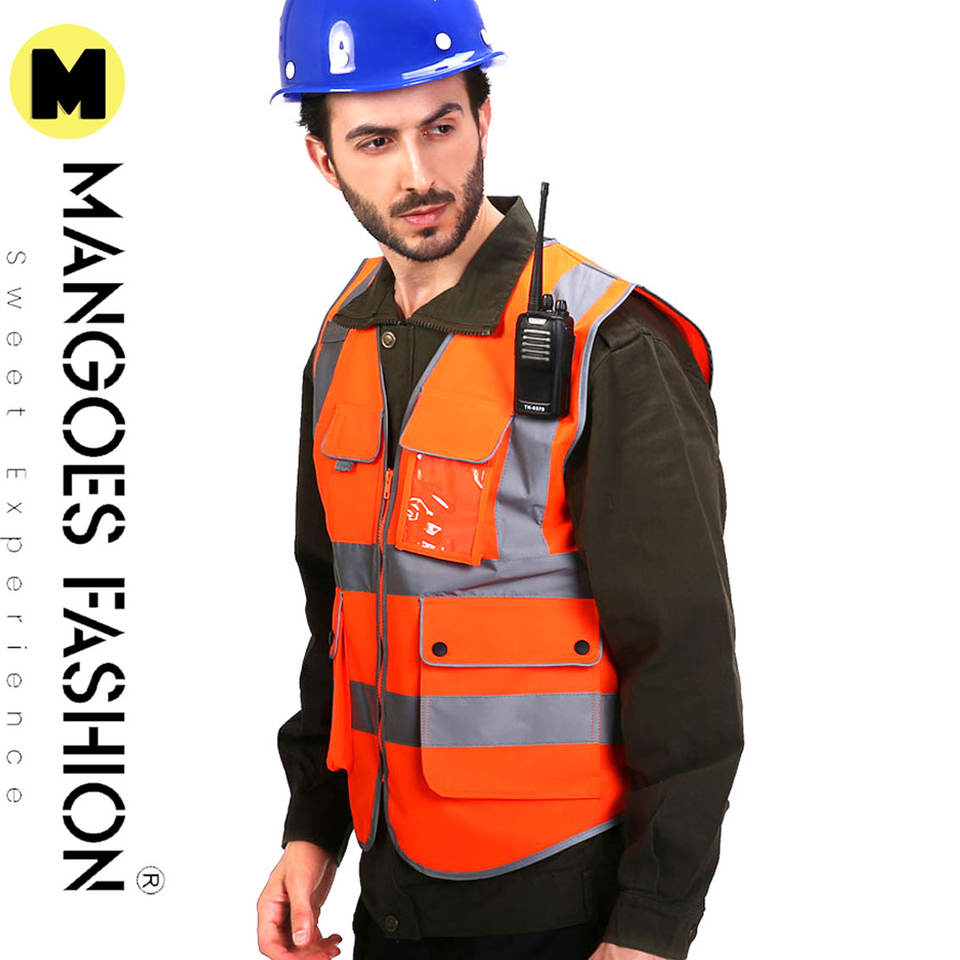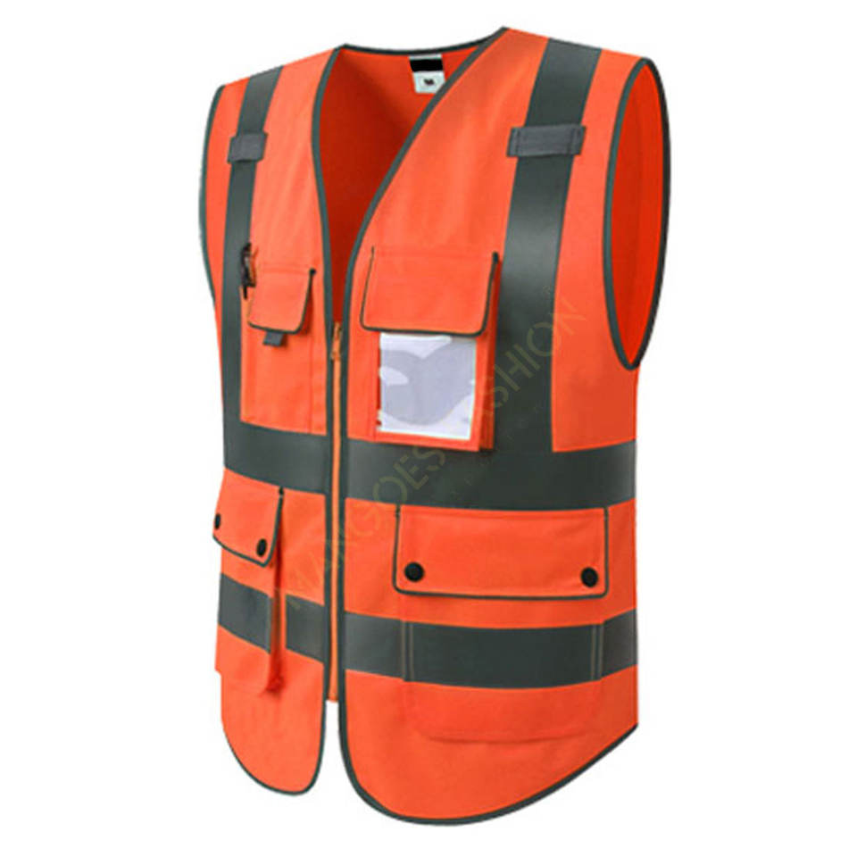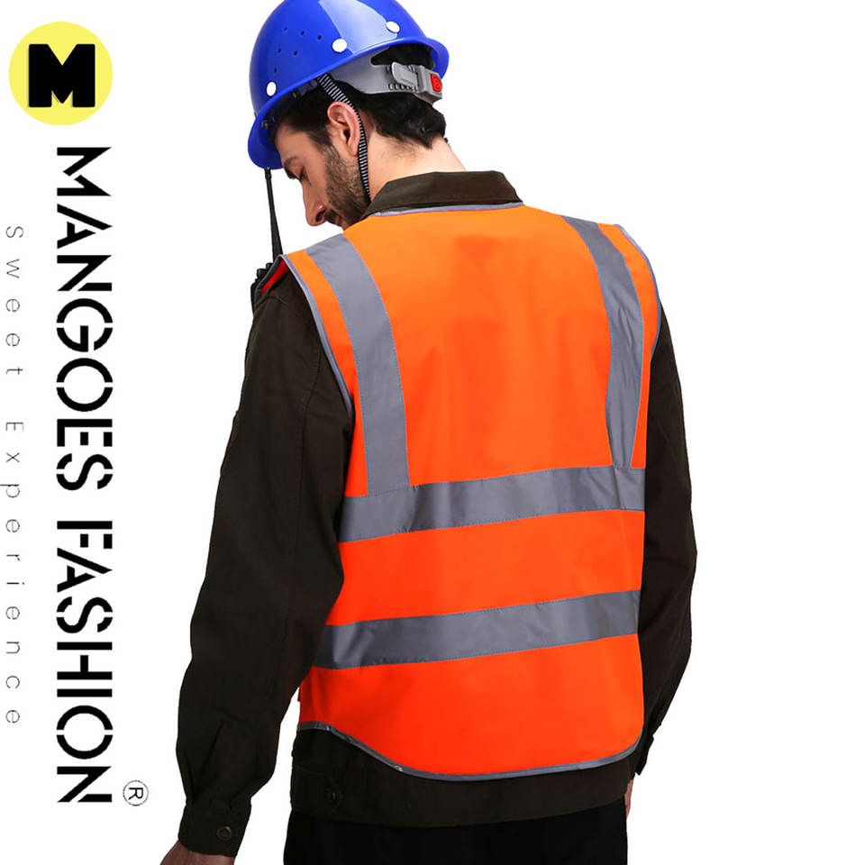เสื้อกั๊กสำหรับคนงานก่อสร้างผ้าถักของผู้ชายปรับแต่งได้พร้อมคุณสมบัติความปลอดภัยบนท้องถนนที่ปรับแต่งโลโก้ได้