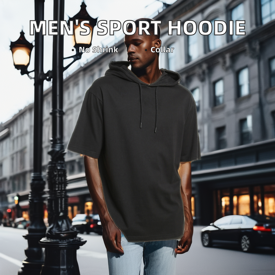 เสื้อผ้าแนวสตรีทมีฮู้ดผ้าฝ้ายแขนครึ่งแขนระบายความร้อนสำหรับผู้ชายปรับแต่งได้มีโลโก้ปกเสื้อแบบมีฮู้ดพิมพ์ลายยอดนิยม