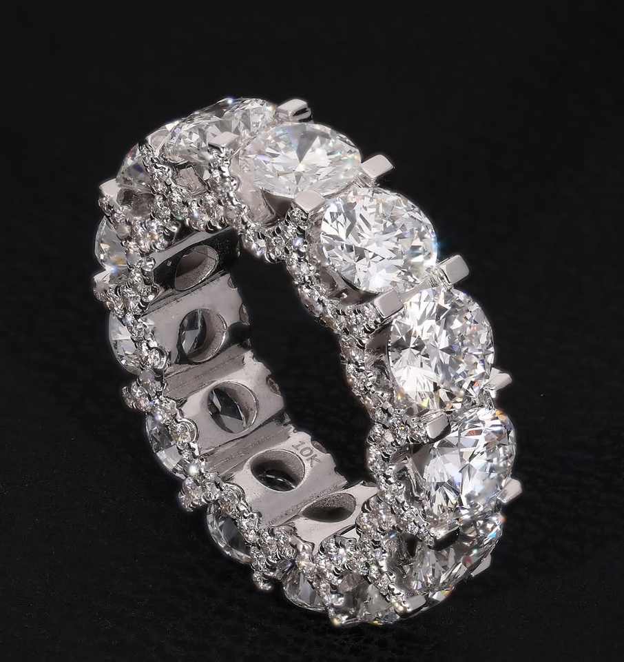 แหวนฮิปฮอปแบบปรับแต่งได้สำหรับผู้ชาย/ยูนิเซ็กซ์ ชุบแพลตตินั่ม เงินแท้ 925 พร้อมขอบประดับมอสซาไนต์ - ของขวัญแต่งงาน