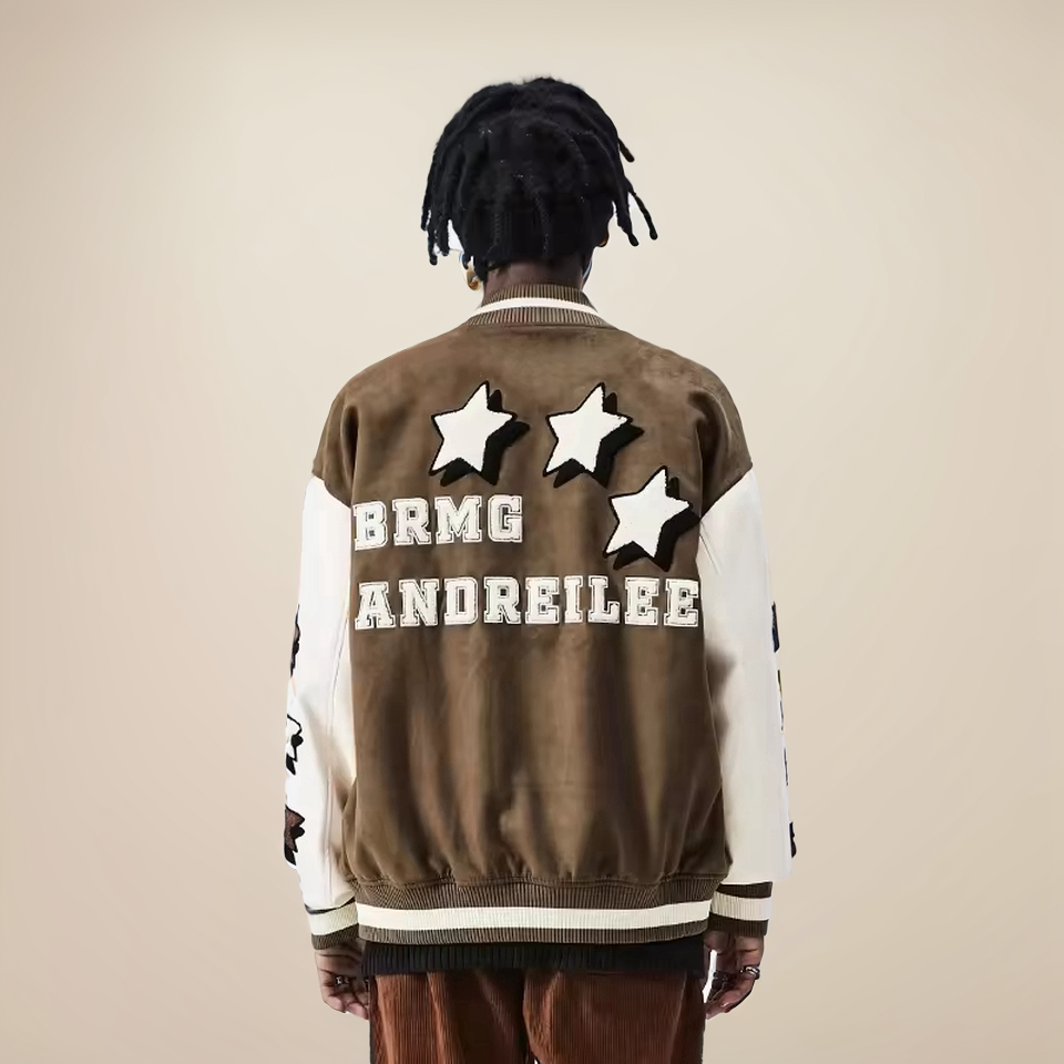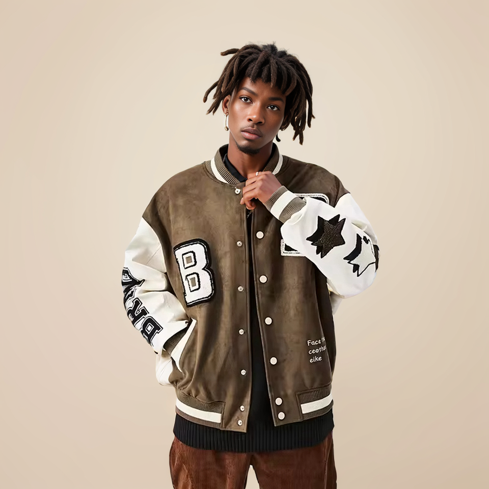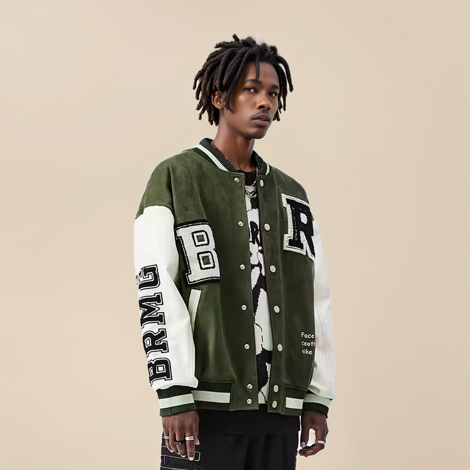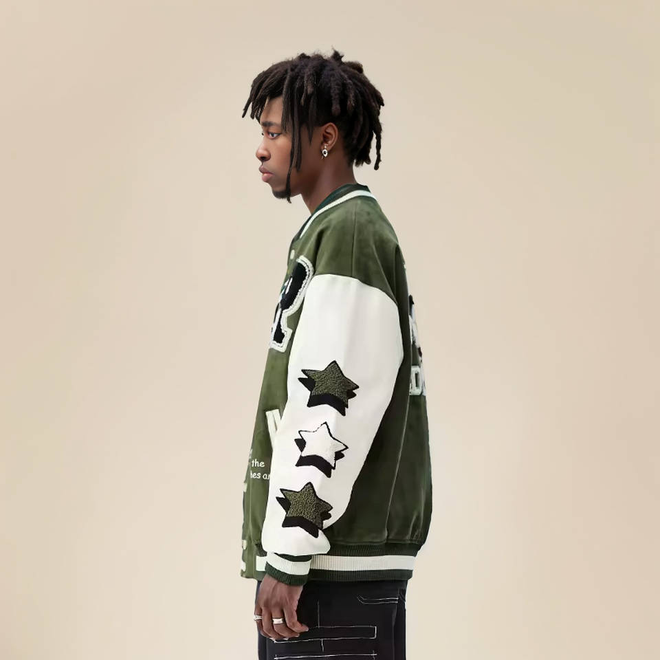 แจ็คเก็ตเบสบอลวิทยาลัยชายแบบปรับแต่งได้ | เสื้อแจ็คเก็ตมอเตอร์ไซค์แบบหนา ปกตั้ง ปักลาย รักษ์โลก